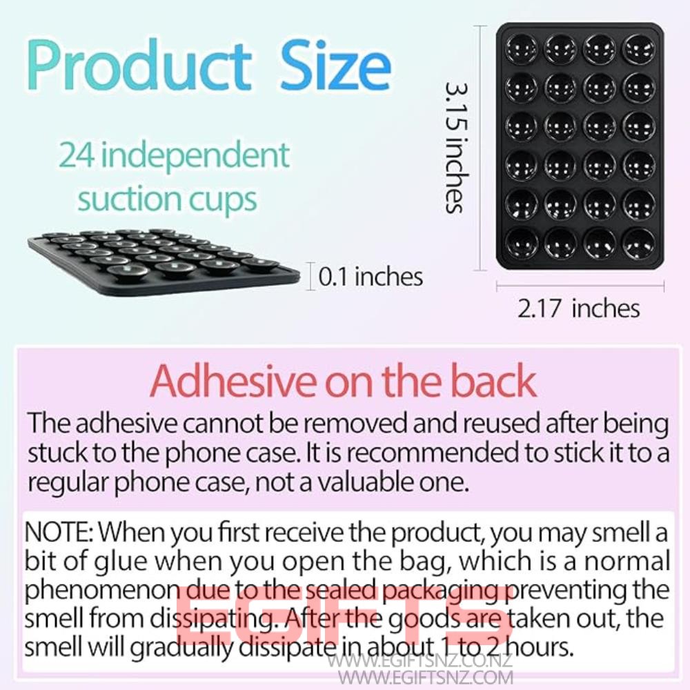 - 【Silicone Suction Phone Case Mount】With 24 Strong and Reliable individual suction cups, EGIFTS provides a thicken and upgraded universal silicon suction adhesive pad for your phone.