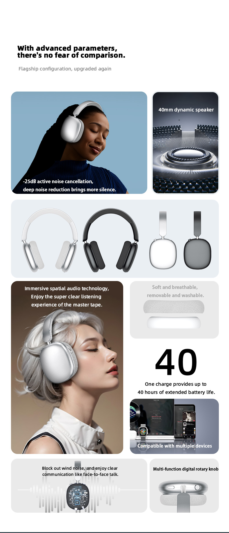 • Extended Playtime for All-Day Listening: Enjoy up to 40 hours of uninterrupted audio on a full charge. Perfect for long trips, workdays, or binge-watching your favorite shows.