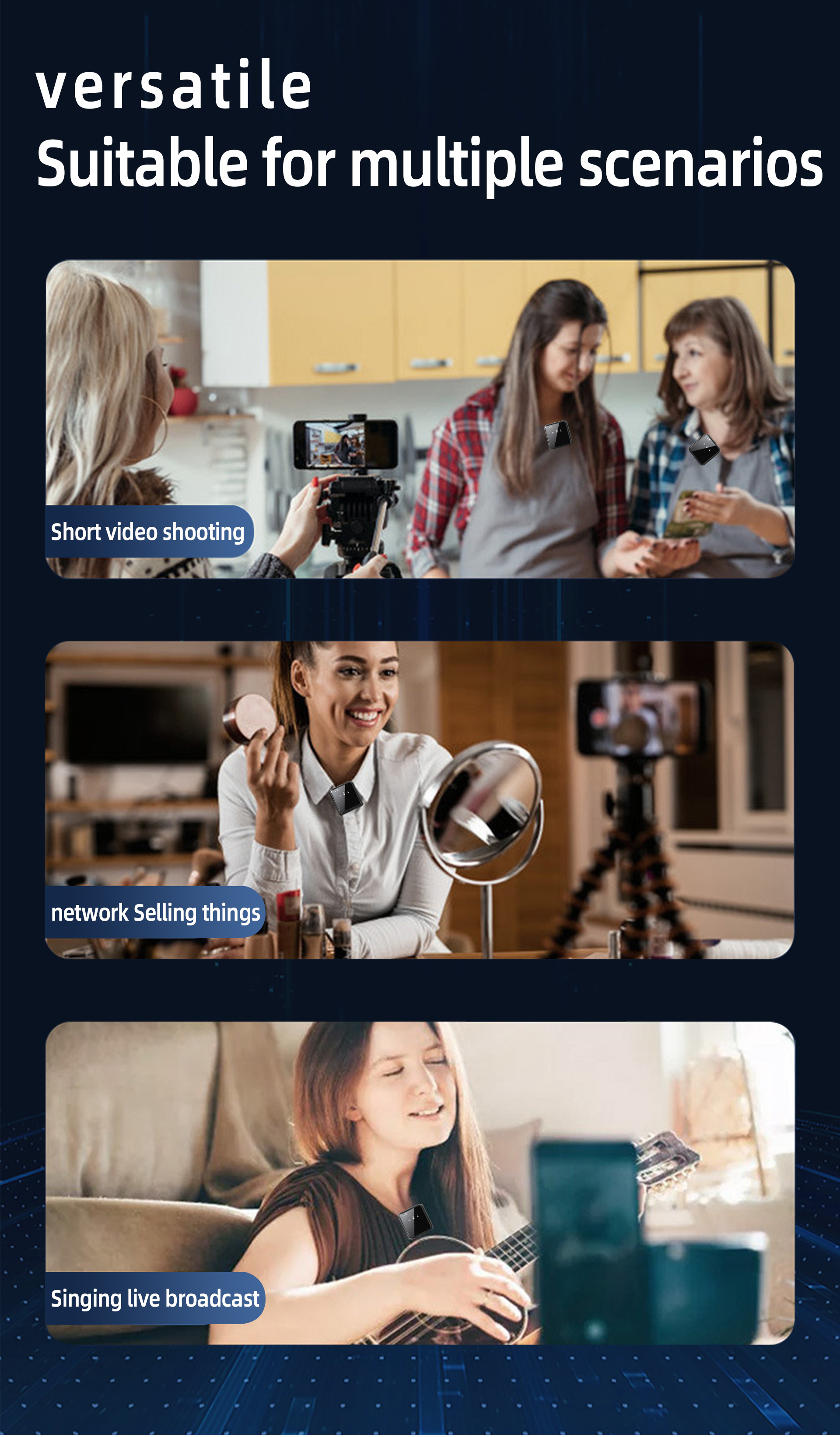 - Transforming Vocal Modes : wireless lavalier microphone pioneers built-in app control with two recording modes: Vlog & Live. It also offers three unique functions: noise reduction (2 levels), reverb (3 levels), and sound card (3 levels). Reverb function enhances spatial music signals and enriches sound saturation, while sound card alters the thickness and delicacy of the sound. adds a fun function to lavalier microphone, suitable for various scenes like live streaming and singing.