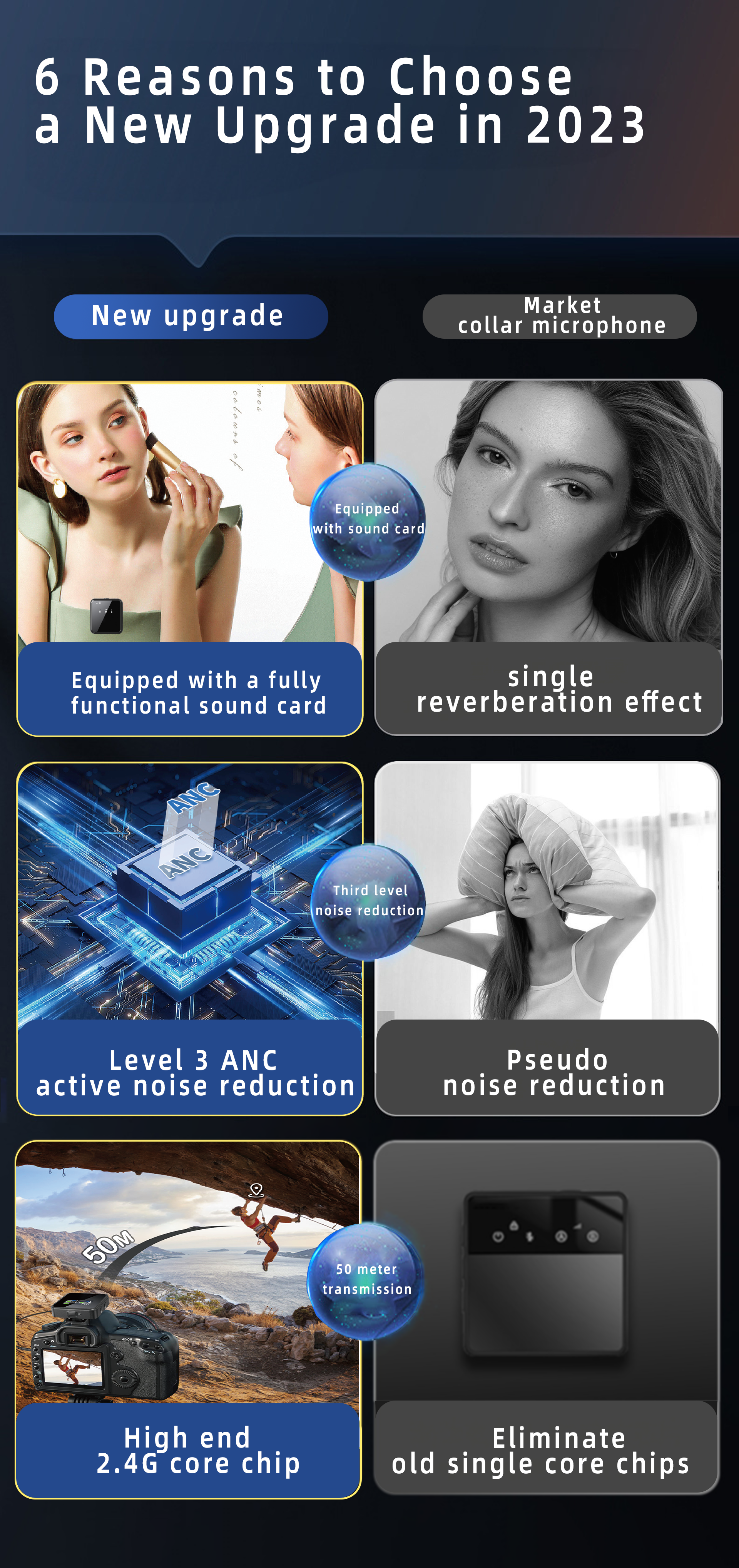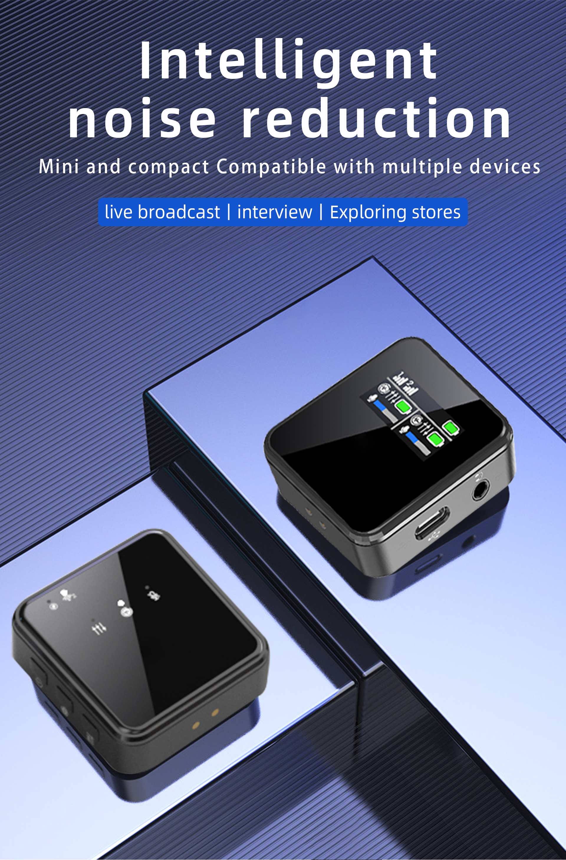 - Transforming Vocal Modes : wireless lavalier microphone pioneers built-in app control with two recording modes: Vlog & Live. It also offers three unique functions: noise reduction (2 levels), reverb (3 levels), and sound card (3 levels). Reverb function enhances spatial music signals and enriches sound saturation, while sound card alters the thickness and delicacy of the sound. adds a fun function to lavalier microphone, suitable for various scenes like live streaming and singing.
