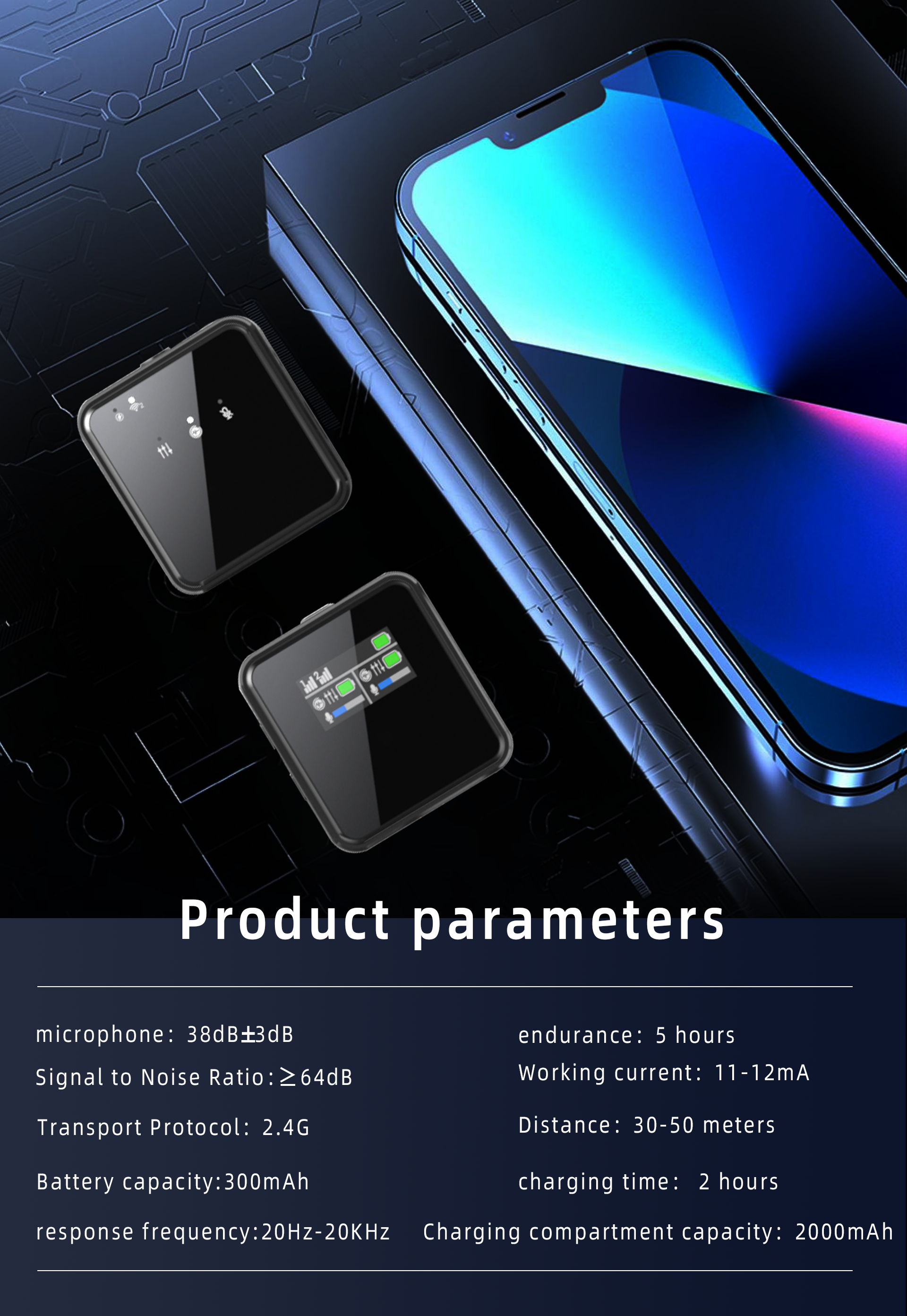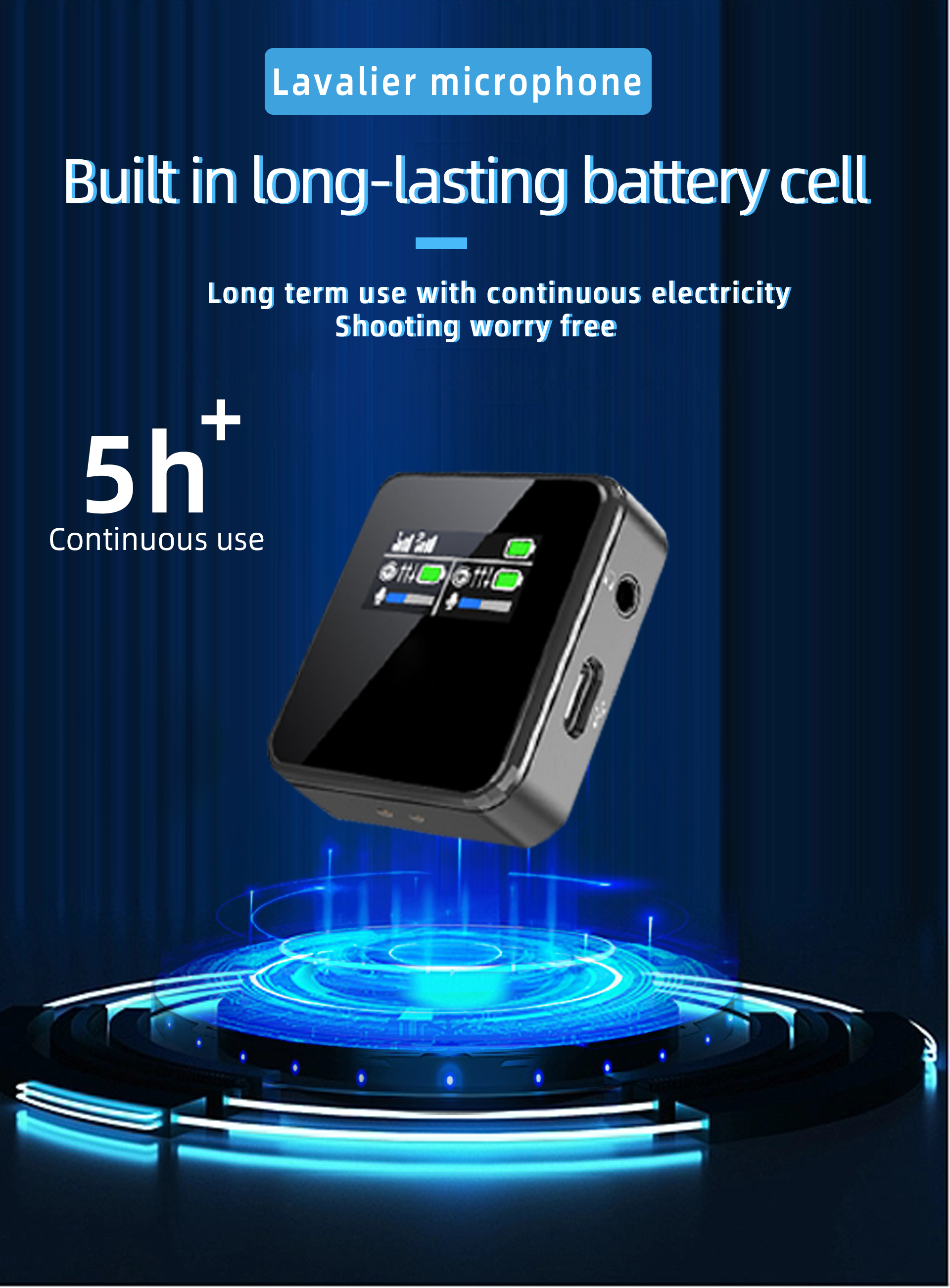 - Farewell to Battery Anxiety: lapel microphone wireless case charges and stores transmitters and receivers, making it portable. Each mic lasts 8 hours on its 480mAh battery. The case, with a 2000mAh battery, supports 4 full charges, ensuring 48 hours of continuous use—ideal for outdoor bloggers, no any battery worries.