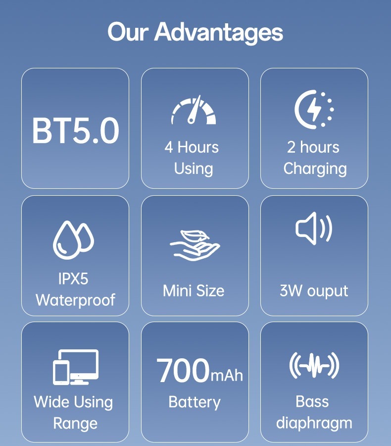 - Support BT playback / BT interconnection TWS, FM, USB, AUX