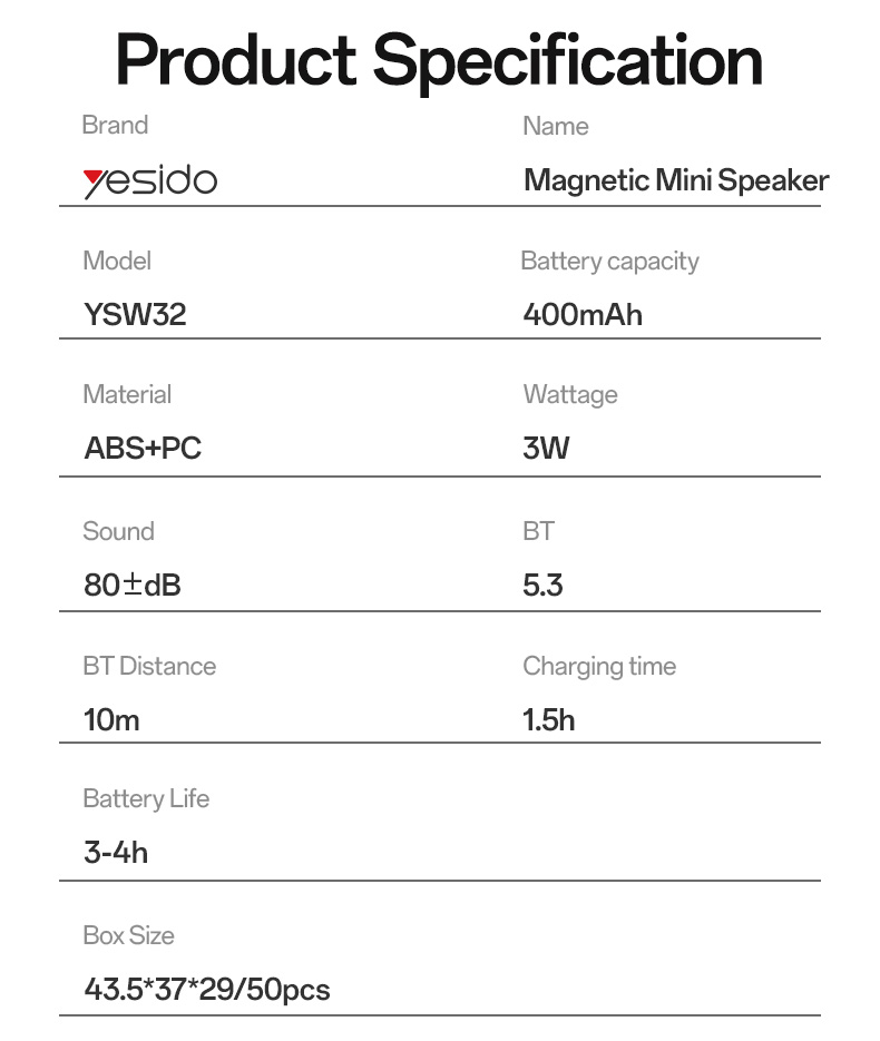 YESIDO YSW32 3W Magnetic Mini TWS Bluetooth Speaker