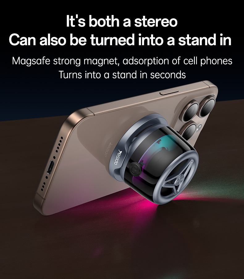 - Magnetic Attachment Featuring N52 magnets, this speaker easily attaches to metal surfaces or your MagSafe-compatible phone, doubling as a convenient stand.