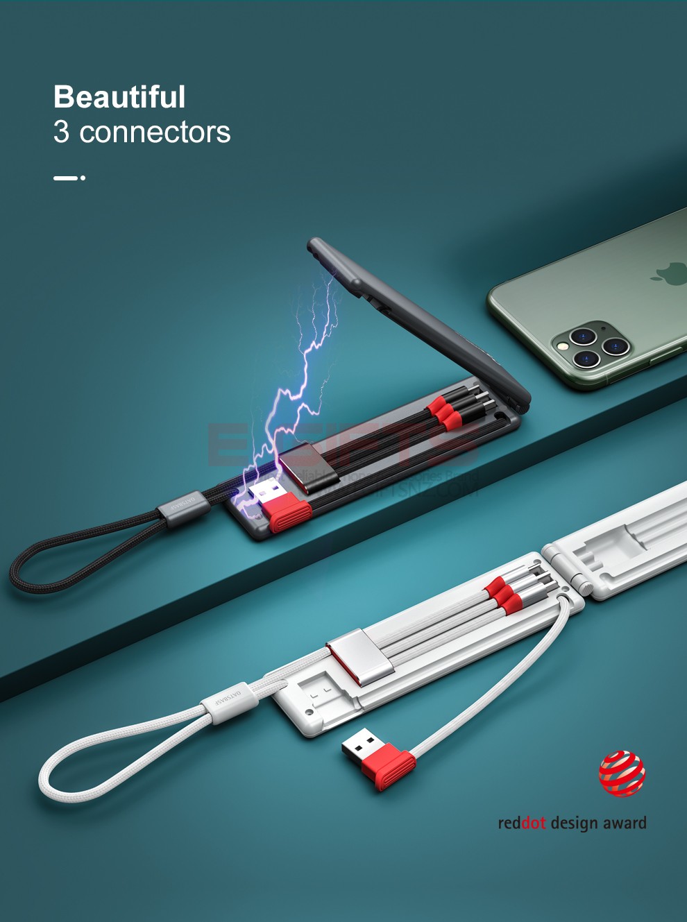 Small and stylish. Also a cell phone holder.3 in 1 Multifunction – This USB cable has 3 charging cables to charge iPhone/Type C/Micro. It supports 2A standard charging for 3 different types of devices (iPhone+Type C+Micro) , and can charge 3 devices at the same time.