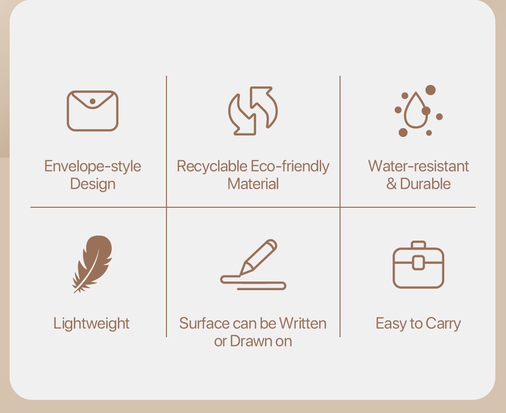 1. Made from eco-friendly DuPont™ paper – water-resistant, tear-resistant, and recyclable.