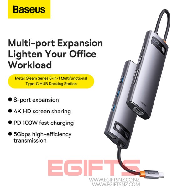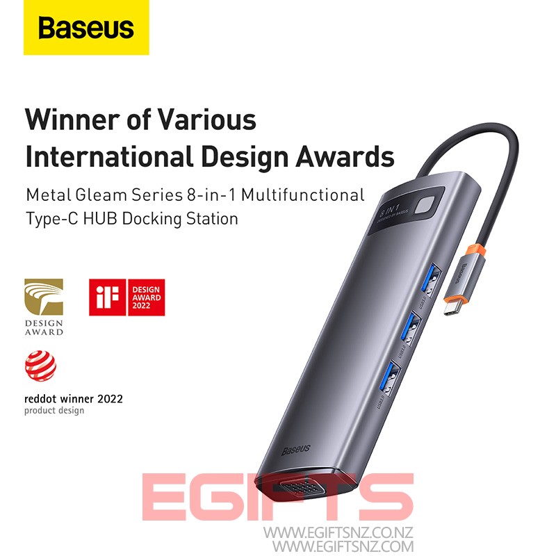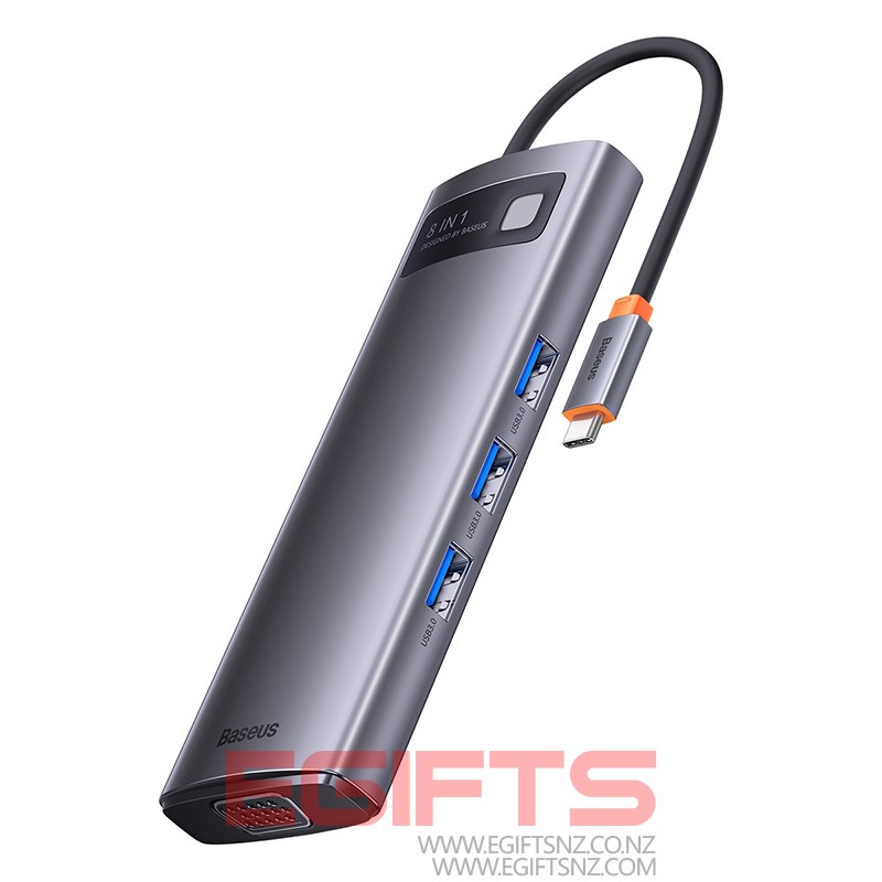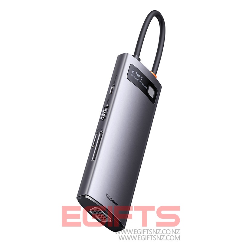 Baseus Star Joy Series 8-in-1 Multifunctional Type-C HUB Docking Station Gray Type-C to HDMI*1 / VGA*1 /USB3.0*3 / Type C PD*1 / SD&TF*1 – WKWG050013