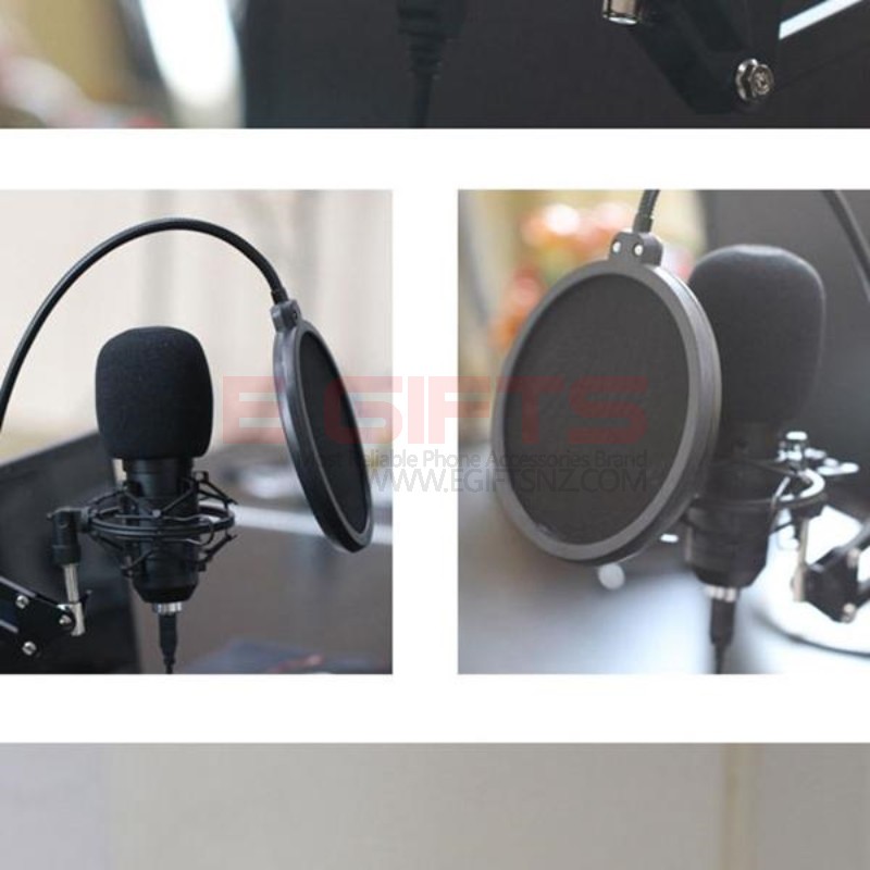 - Windscreen foam , spider support and pop filter to dampen unwanted sounds.