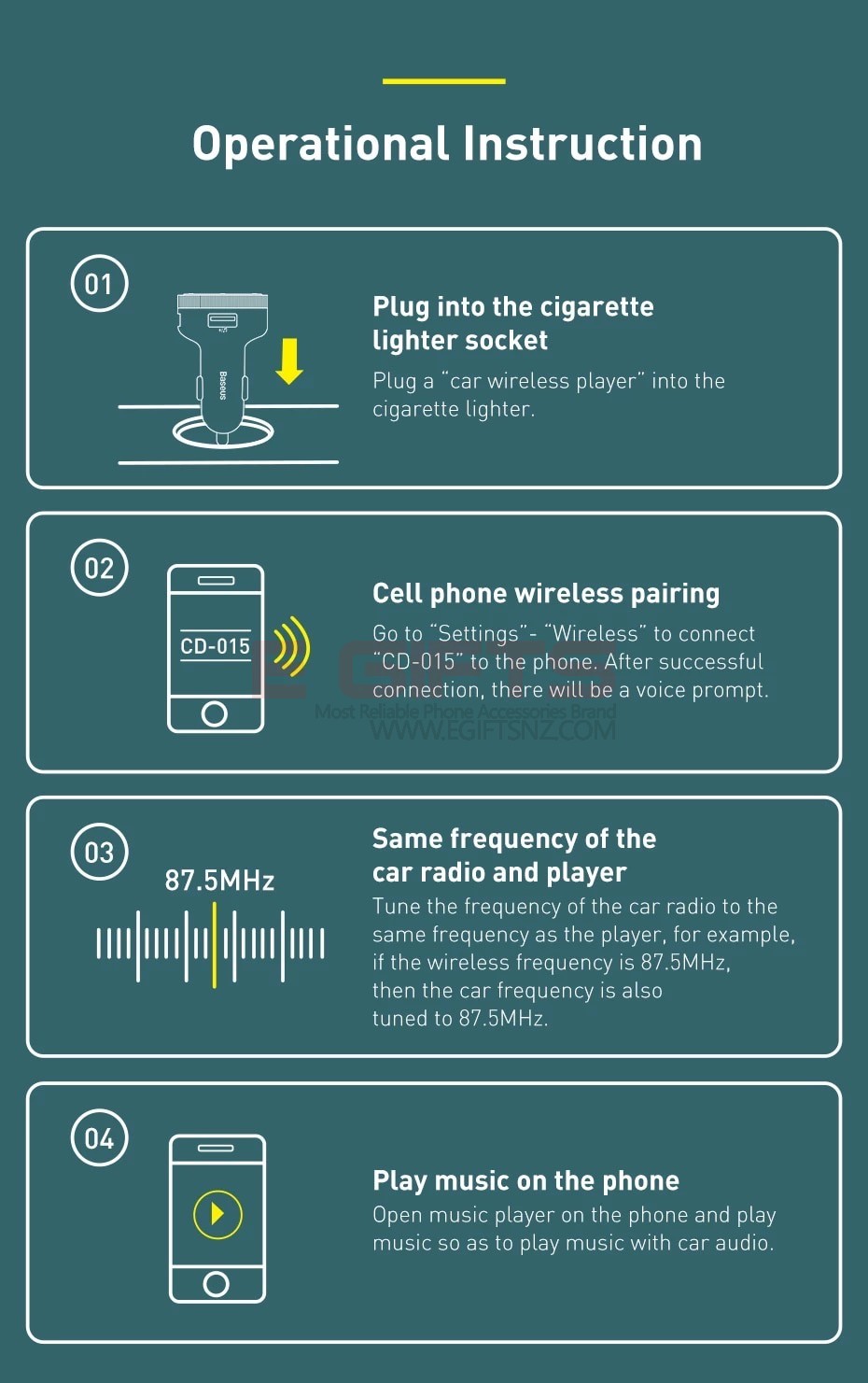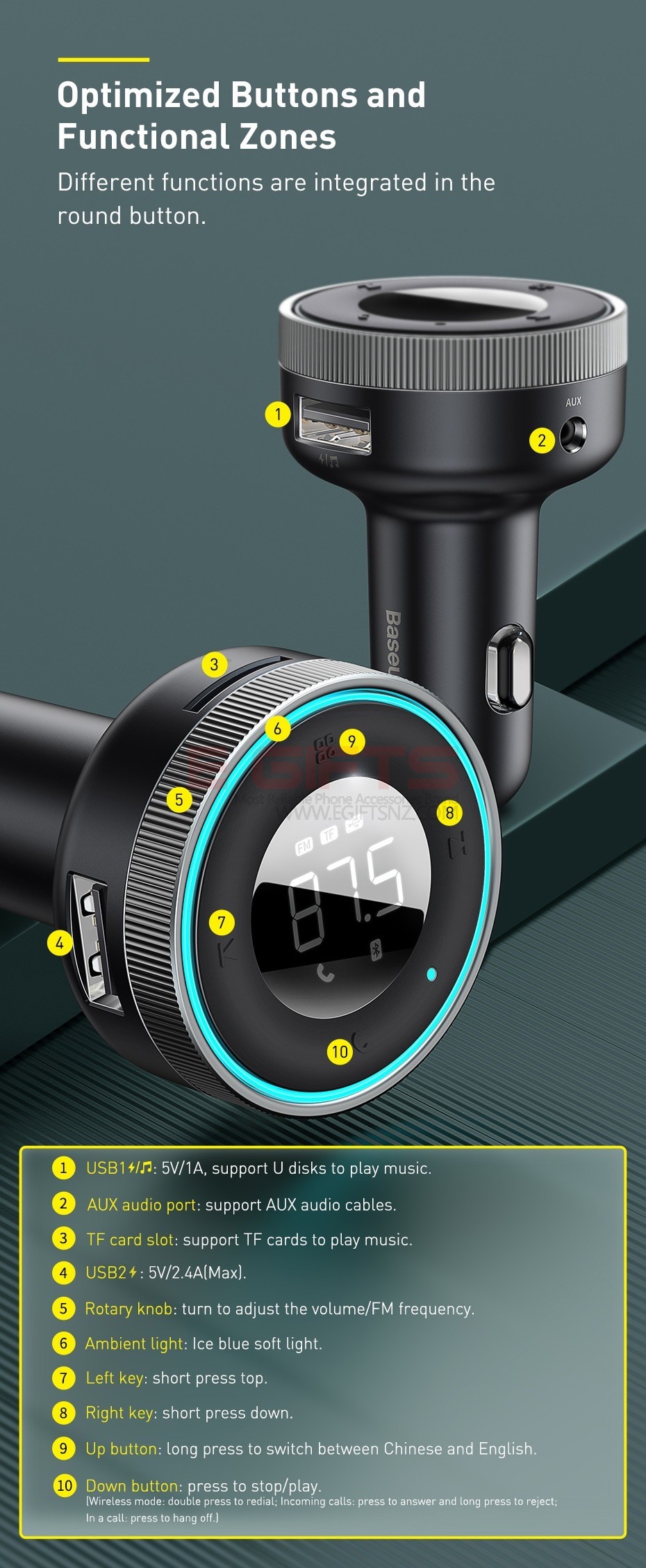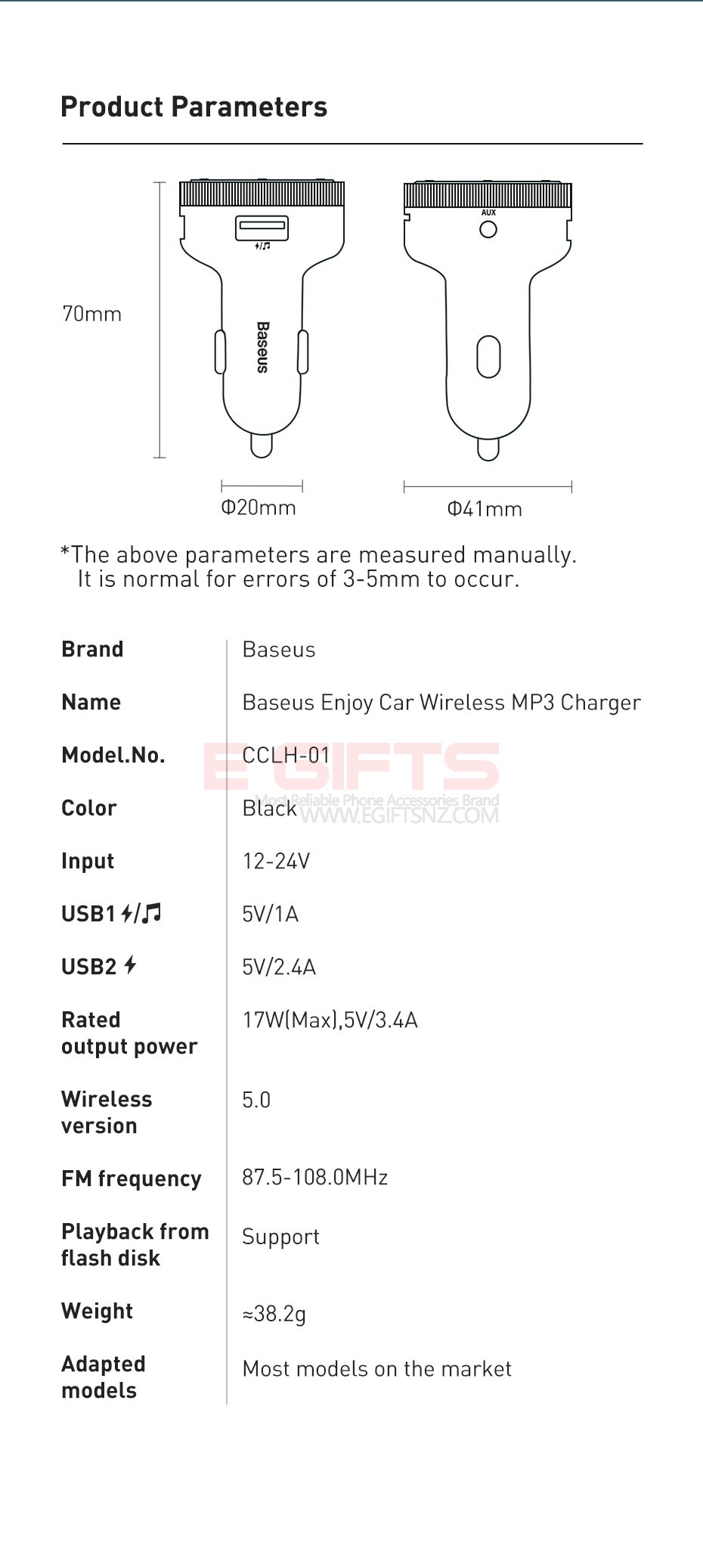 - Baseus Enjoy Car Wireless MP3 Charger