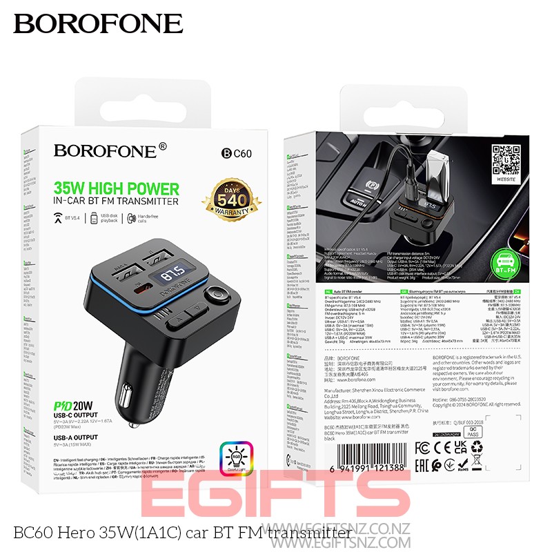 Borofone BC60 35W PD20W USB Type C Fast Car Charger FM transmitter