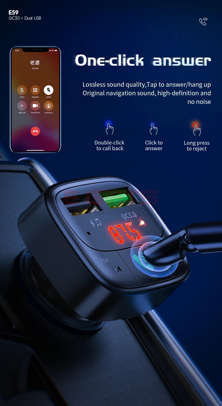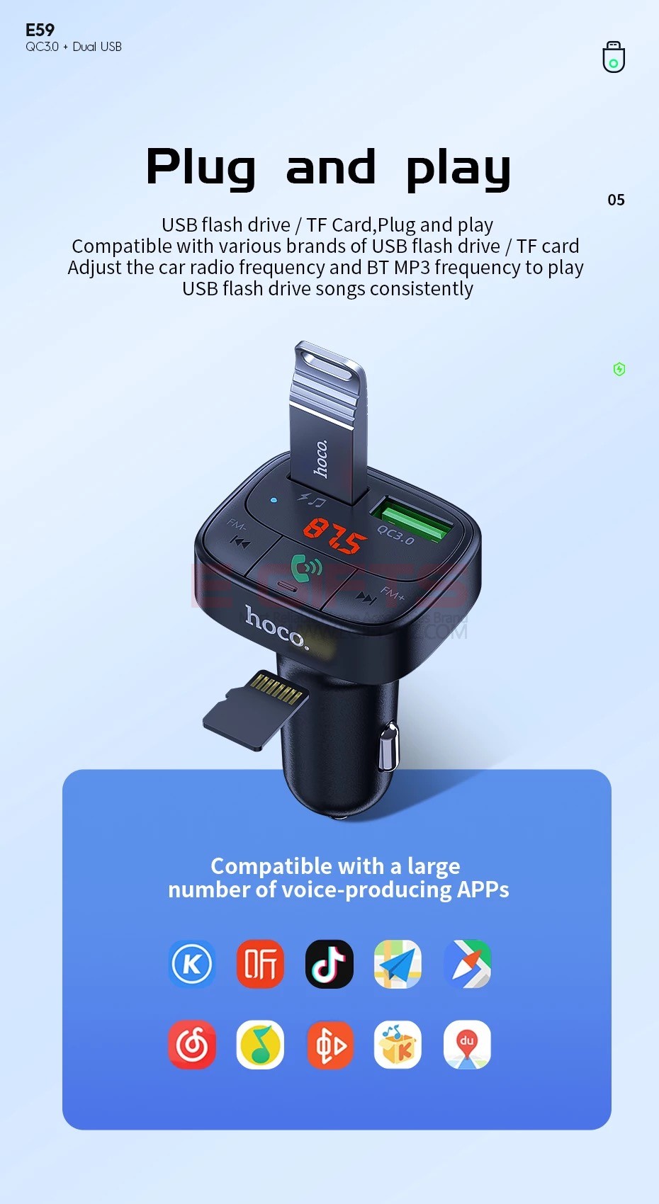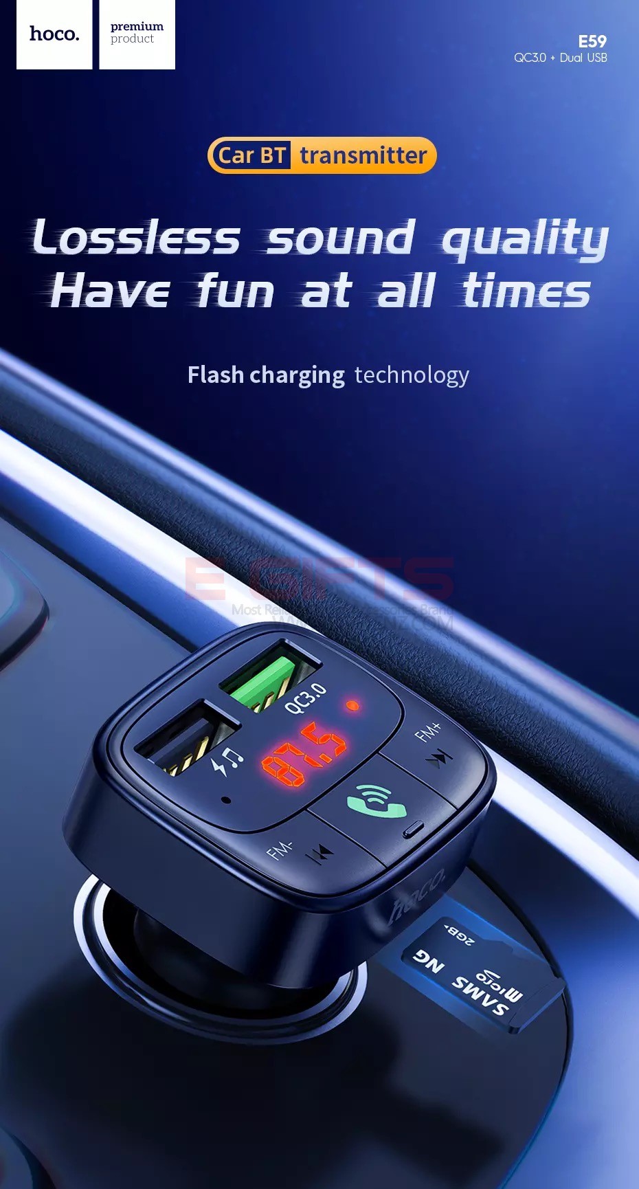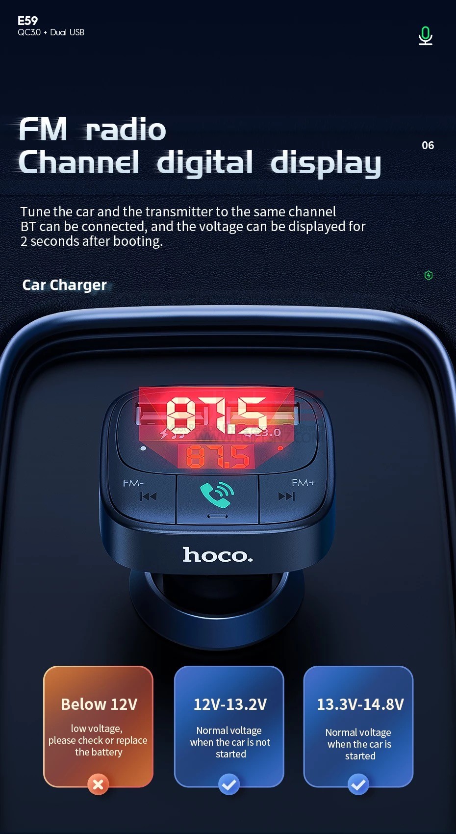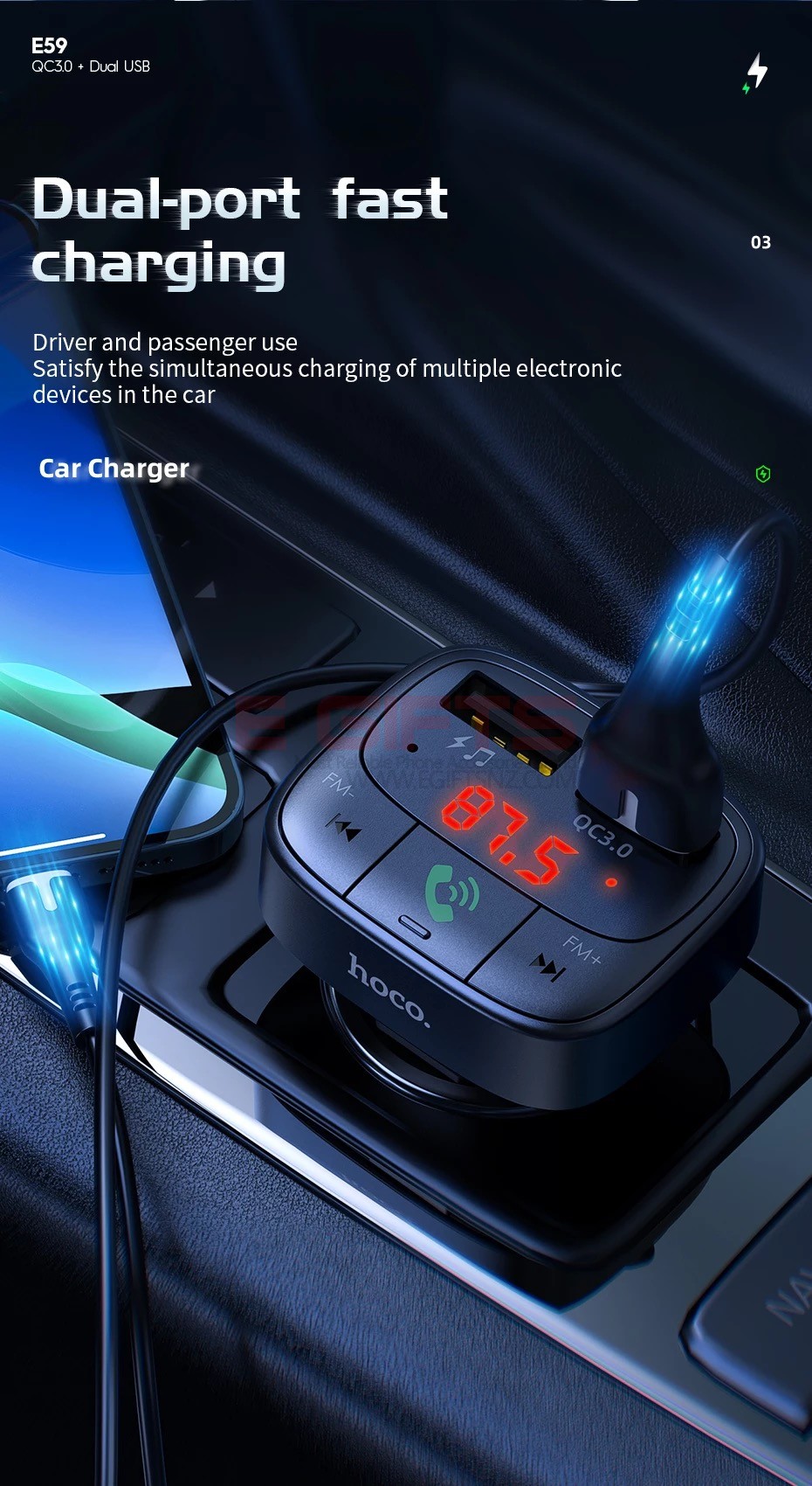 HOCO Bluetooth FM Transmitter Car Charger E59