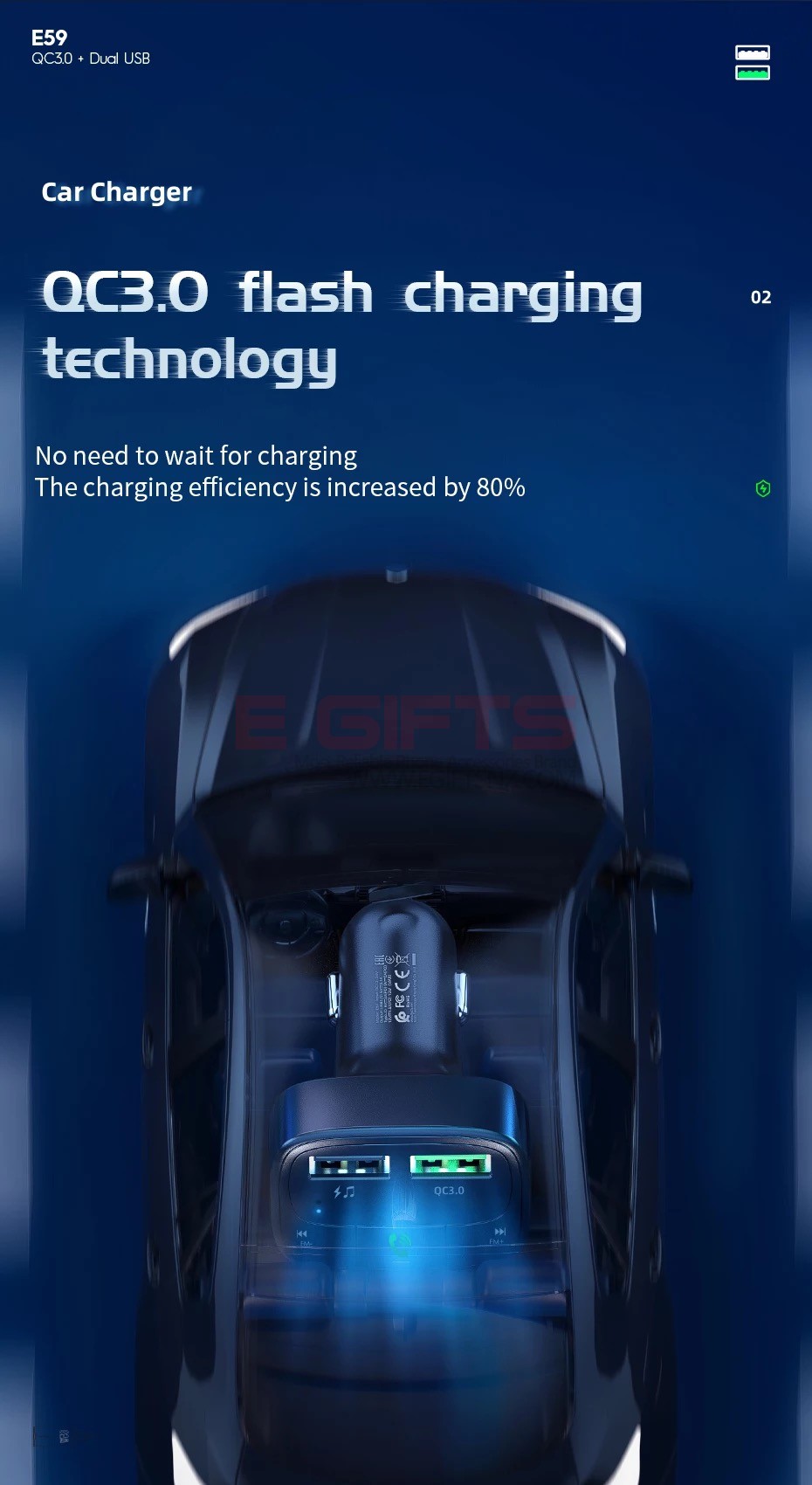 6. Dual USB output, support for QC, for FCP, for AFC and other fast charging protocols.
