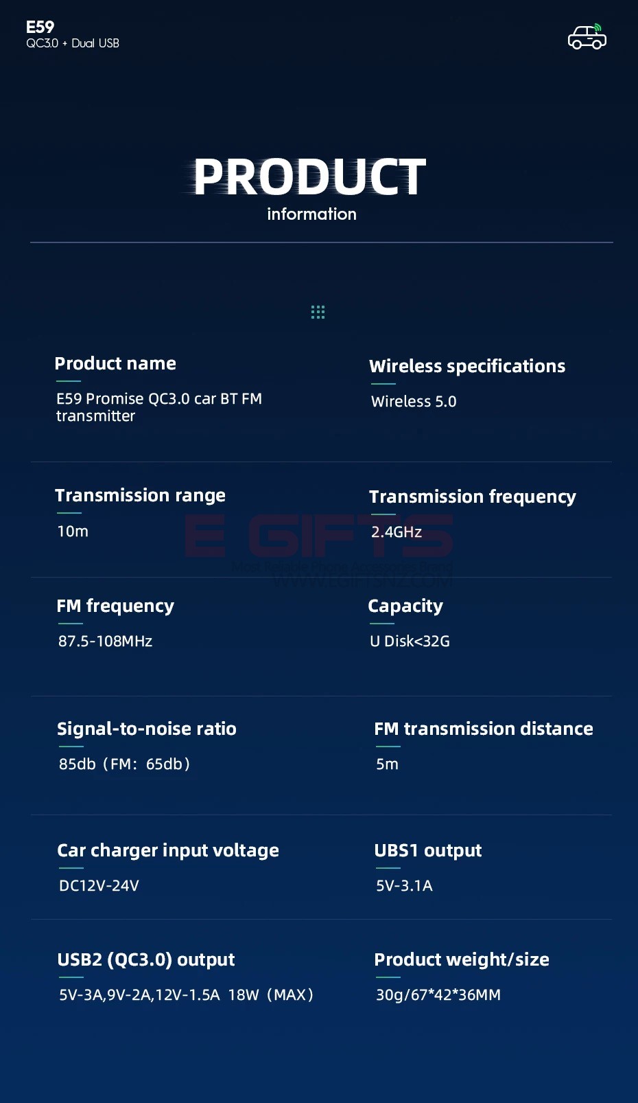 2. Sizes: 67*42*36mm. Weight: 30g.