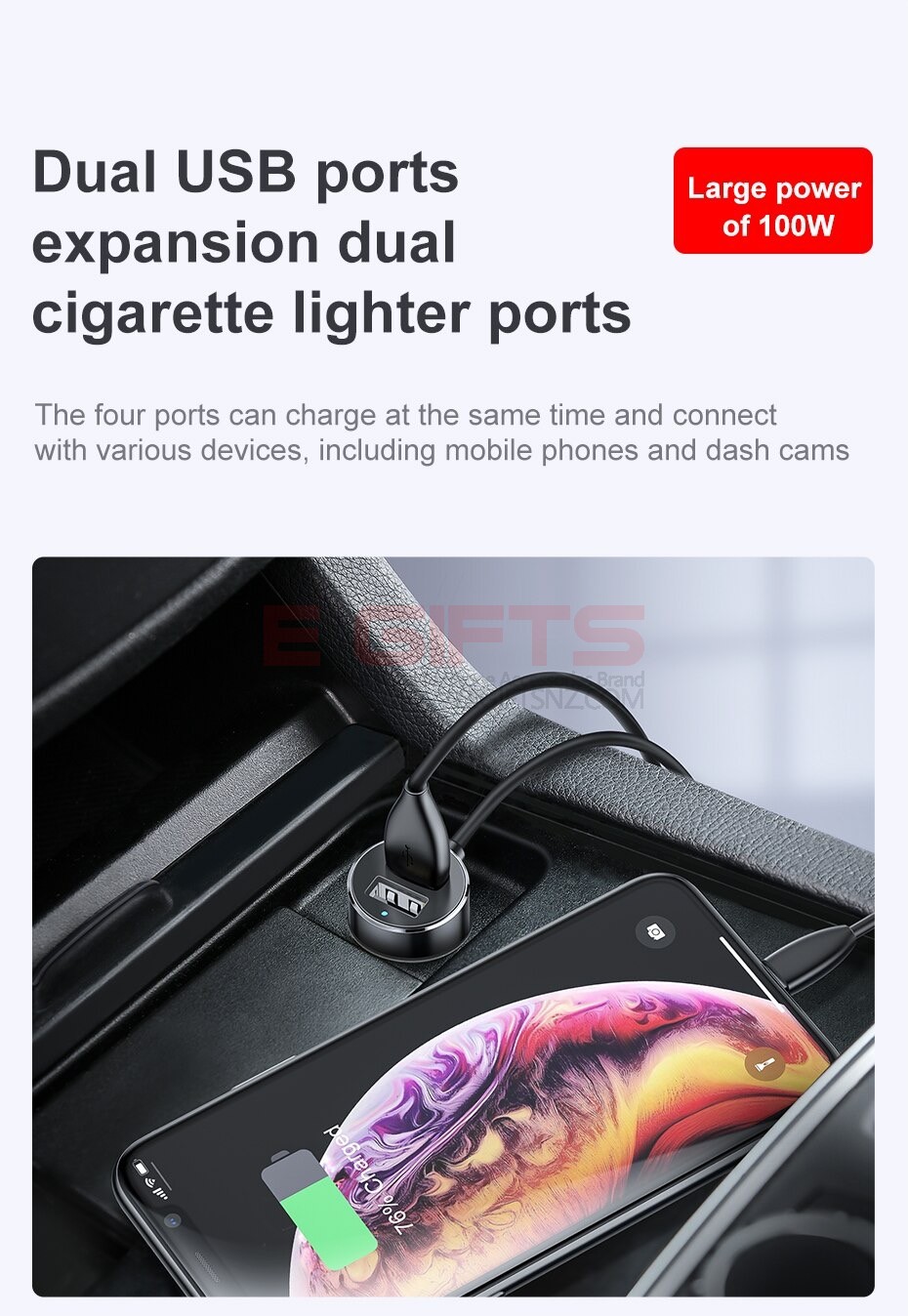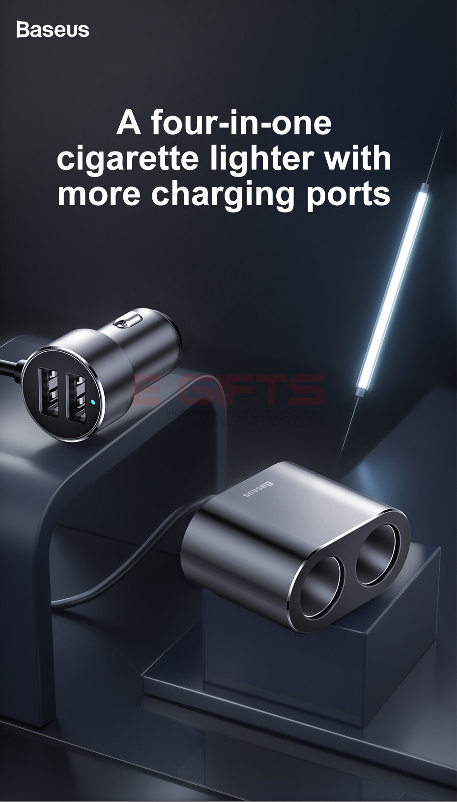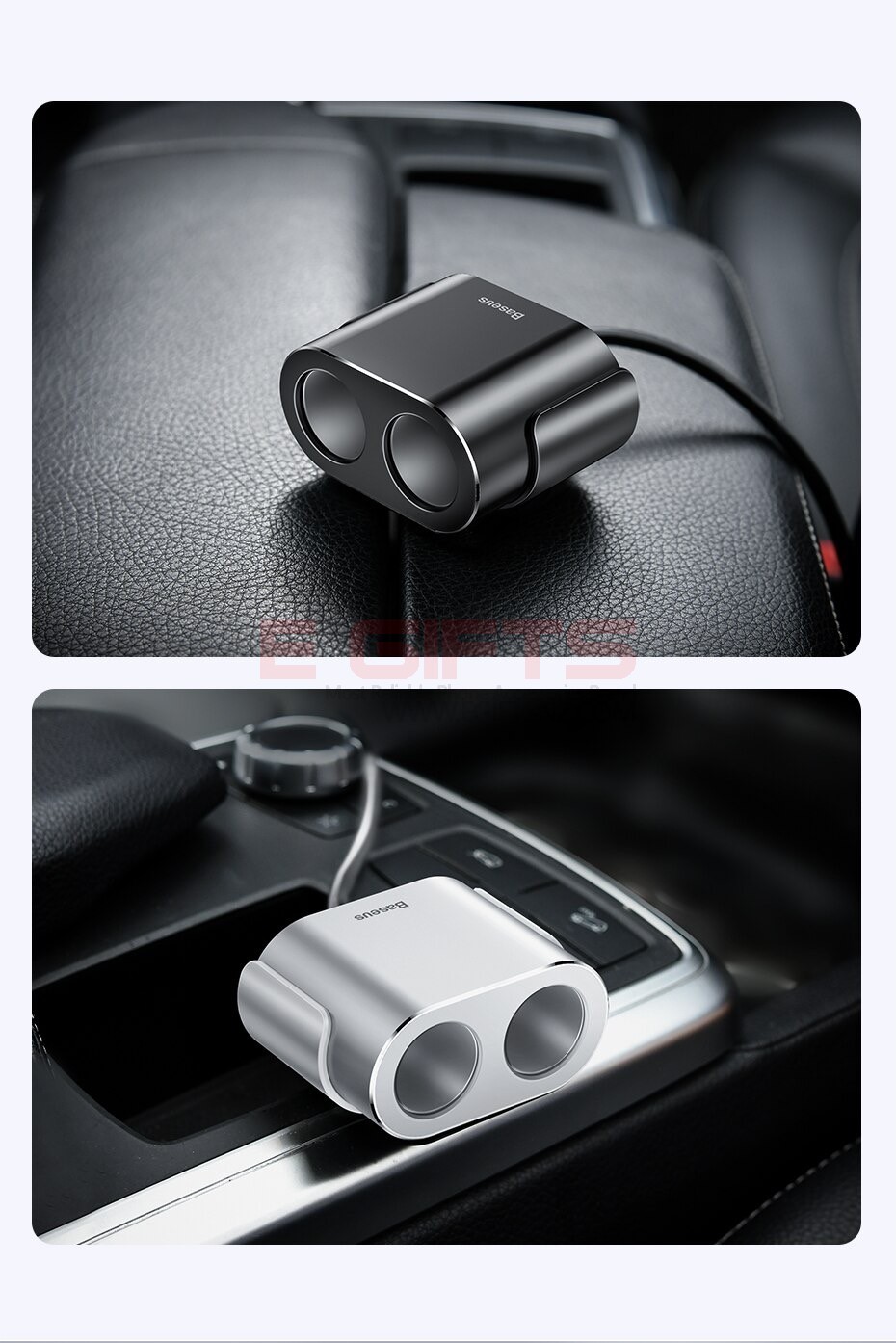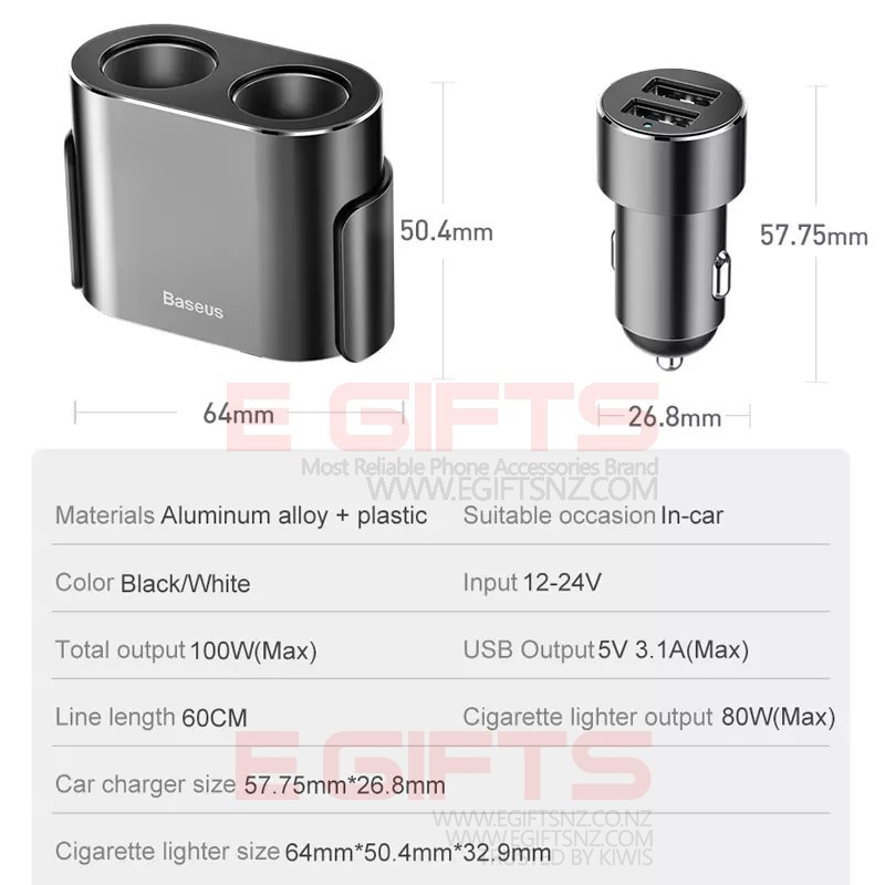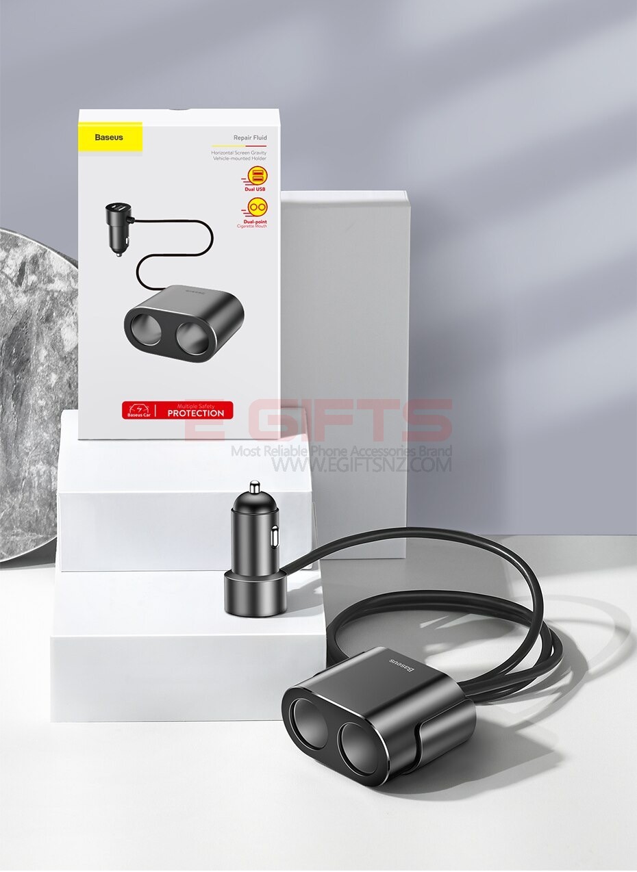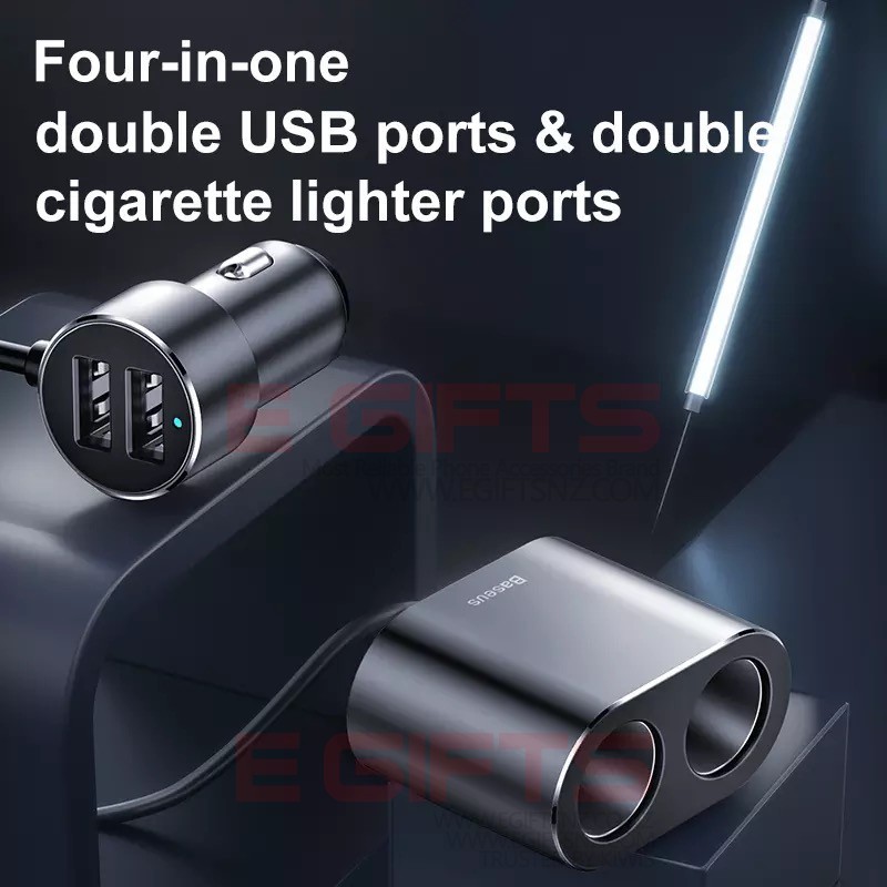 • Baseus Y Type Dual USB Cigarette Lighter Extended Car Charger
