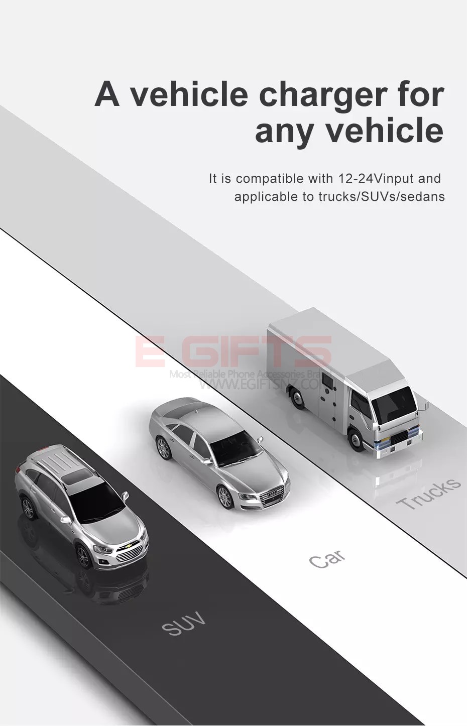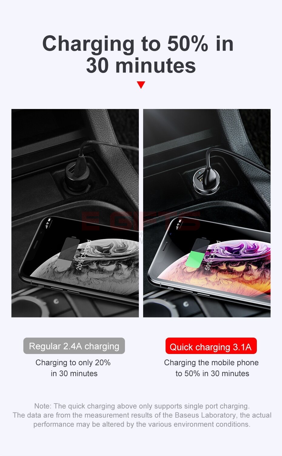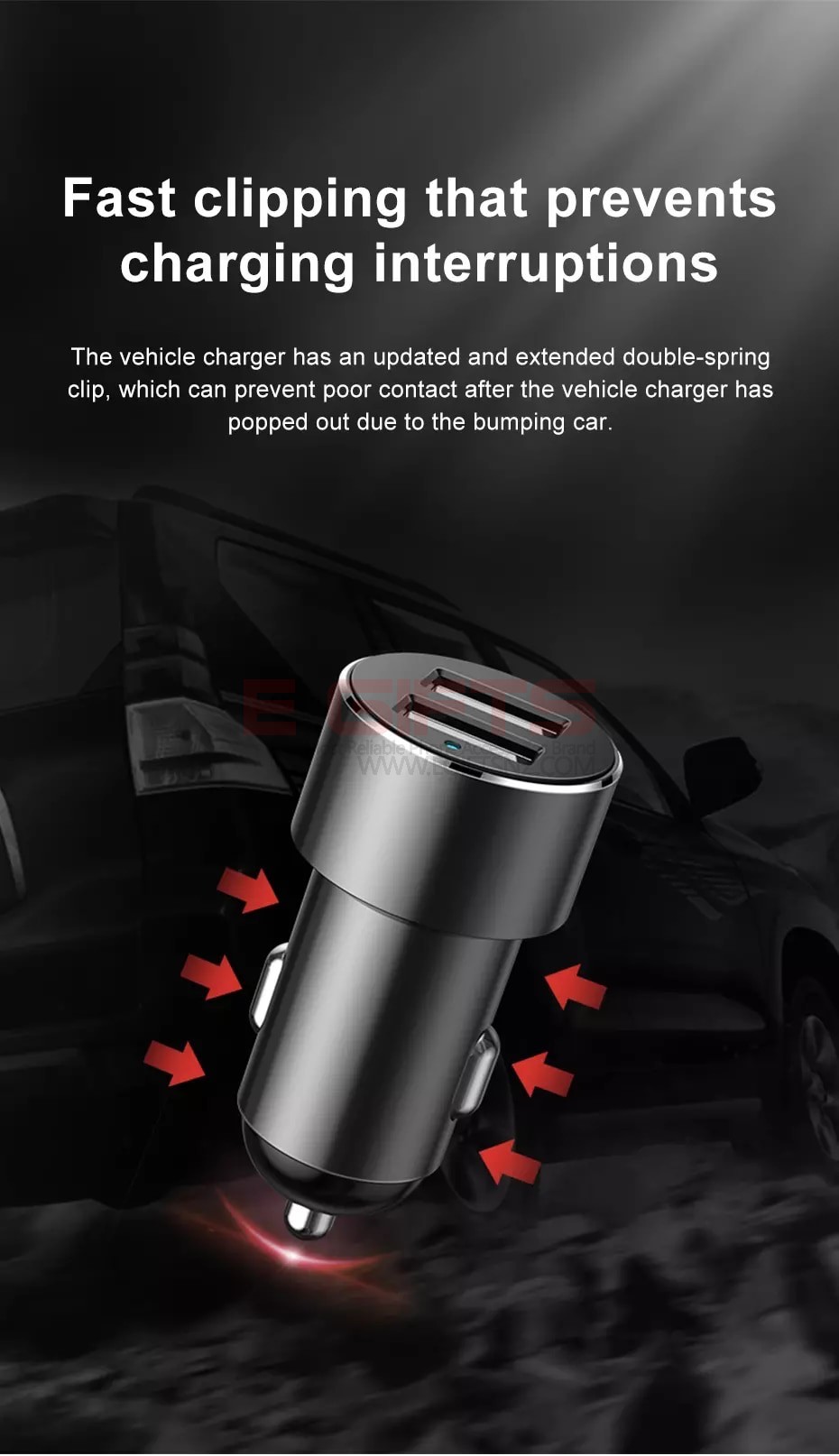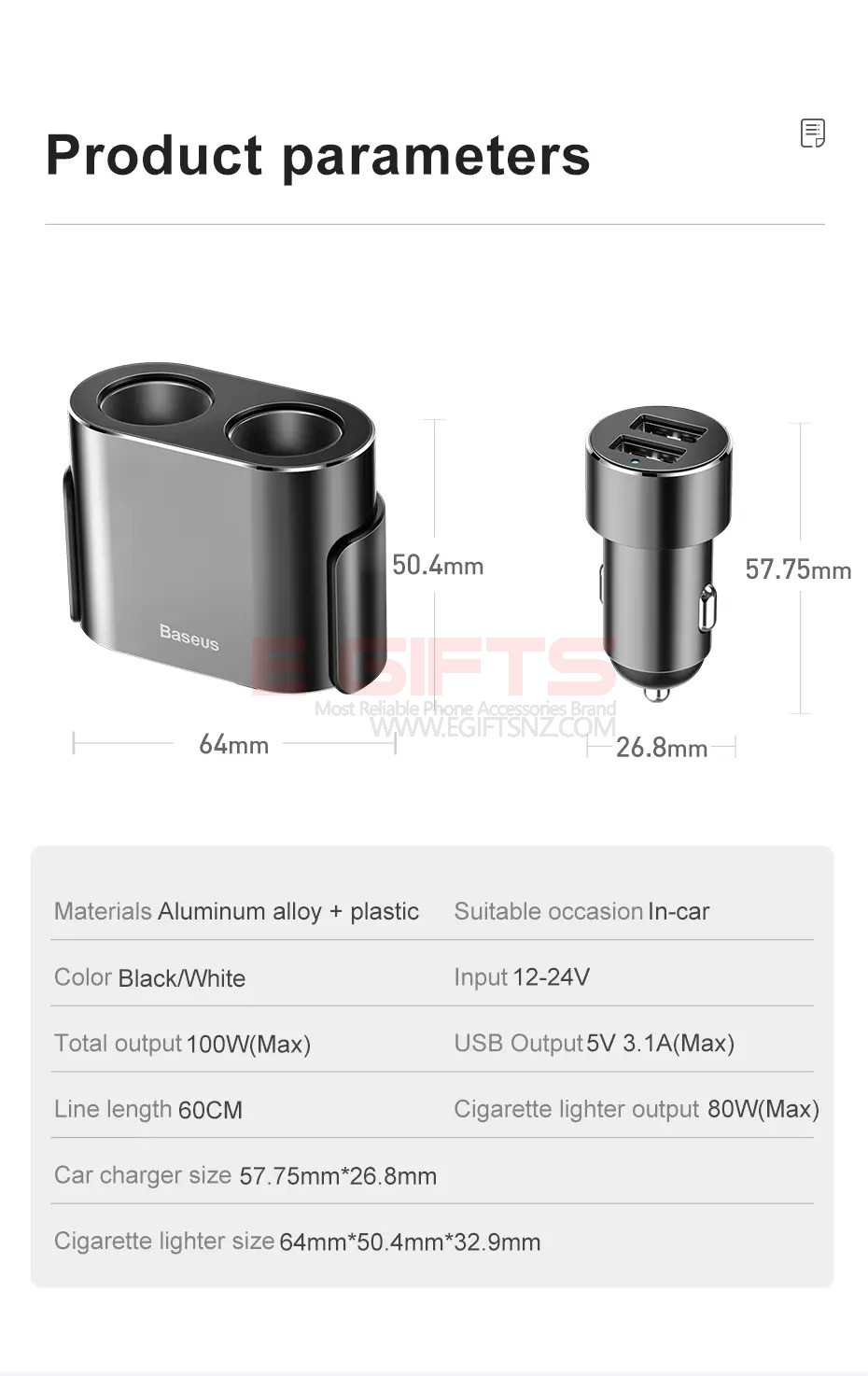 • Car charger size 57.75mm*26.8mm
