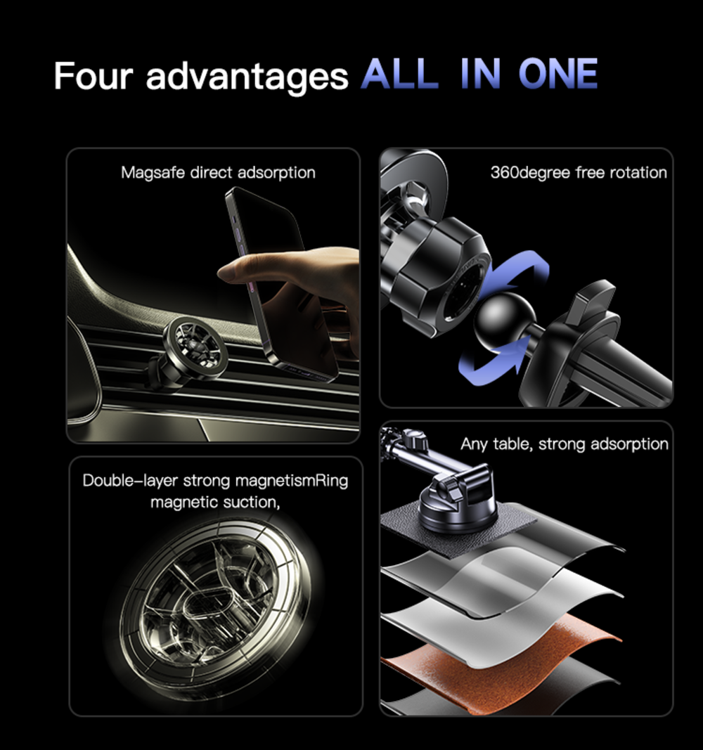 1. Using 20 magnets to form a double-layer strong magnetic ring, firmly adsorbing the phone.
