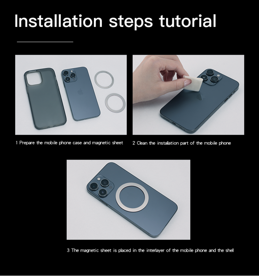 2. It is directly suitable for iPhone 12 and above phones, and can be used with the complimentary magnetic ring for other phones.