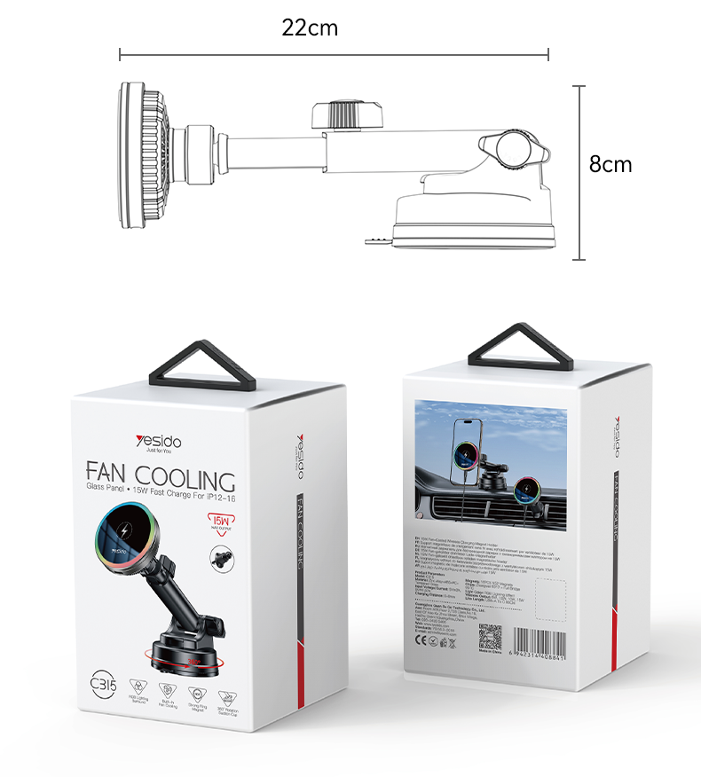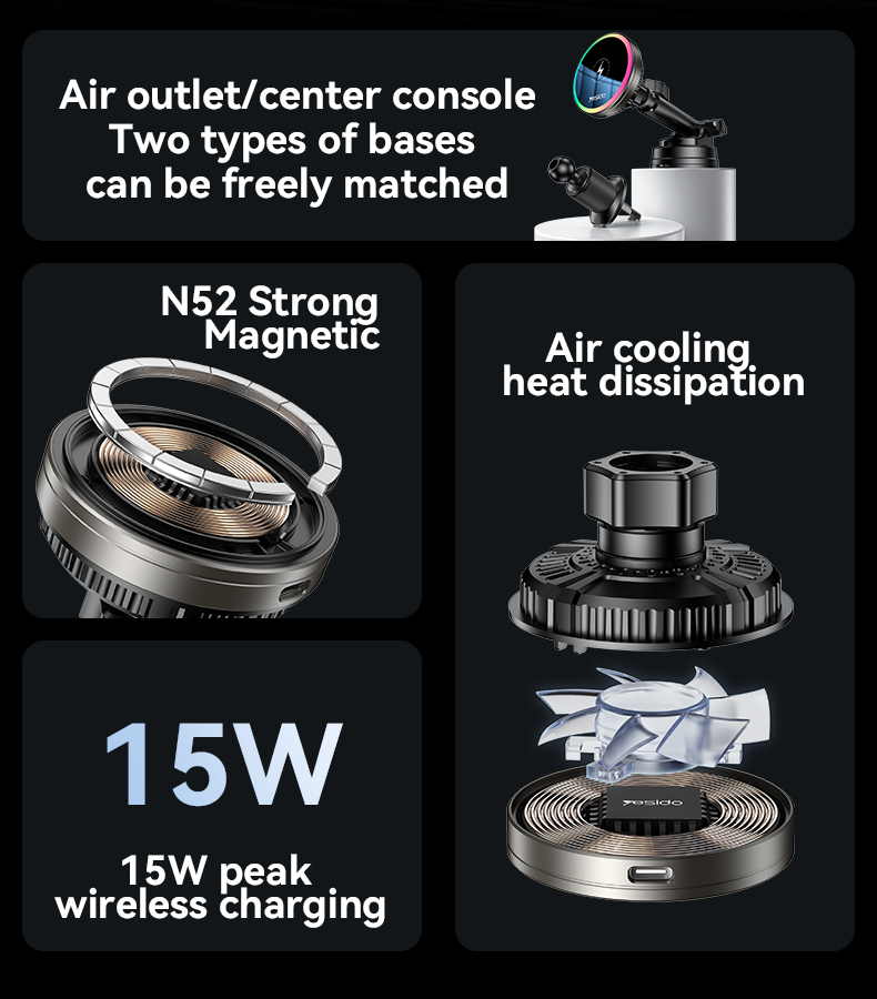 YESIDO Magnetic Car Phone Holder Magsafe 2in1 Wireless Charging C315