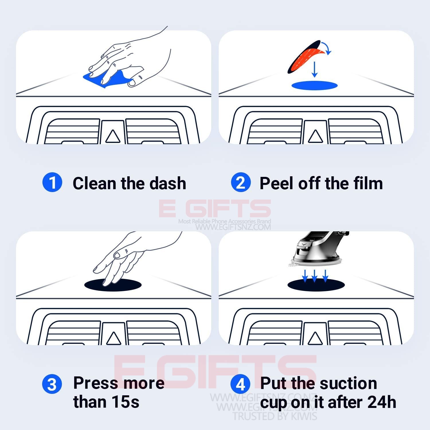 - When you want a dashboard car phone mount, maybe you are worried about the suction cup of your car mount, which is not stronger, maybe you also afraid that your car dash does not accept to the suction cup of the holder. Now, with the adhesive pad, you never worry about it anymore. Everything is perfect!