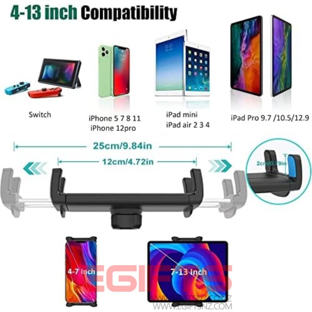 • Powerful Tablet Clamp: Thicker and tighter clamp of car ipad holder can provide a greater grip to hold all 6″ to 11″ diagonal tablets(The maximum opening distance of the clamps is 9 inch). Extended side arms with soft rubber pads make eSamcore ipad car mount suitable for tablet with normal protective case(Thickness below 17mm). Anti-slip silicone pad of clamp prevents iPad slipping from car tablet holder when driving on the bumpy road. Good car accessories gift and travel essentials for family!