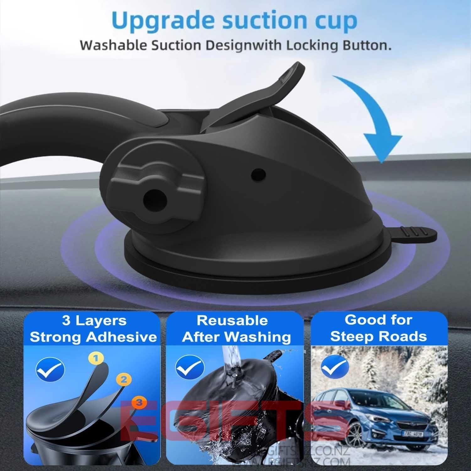 • Suction Cup Tablet Car Mount: Simple 3-step lock mechanism provides extremely strong suction power for our eSamcore tablet car holder. The suction cup is coated with a layer of sticky gel to prevent air gaps generation. ❤️️ A flat and clean surface will create a stronger suction power for ipad holder. ❤️️Before installation, Please clean the dashboard and dry it completely.