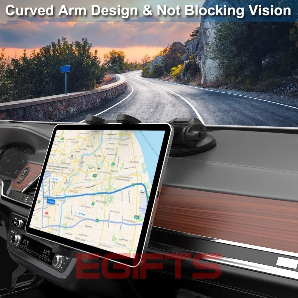 • Unobstructed View iPad Car Holder: With upgraded downward extending mount arm, eSamcore dashboard iPad holder for car will not block your view of the road. You can adjust the tablet car mount arm up and down in 140° through the security lock to fit your dashboard. With 360°rotating ball joint, eSamcore iPad mount for car can also be switched between portrait and landscape view.