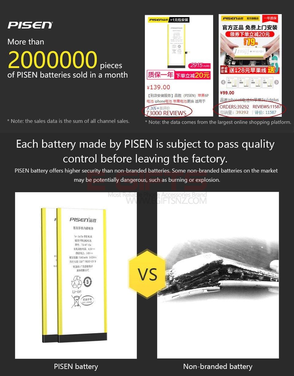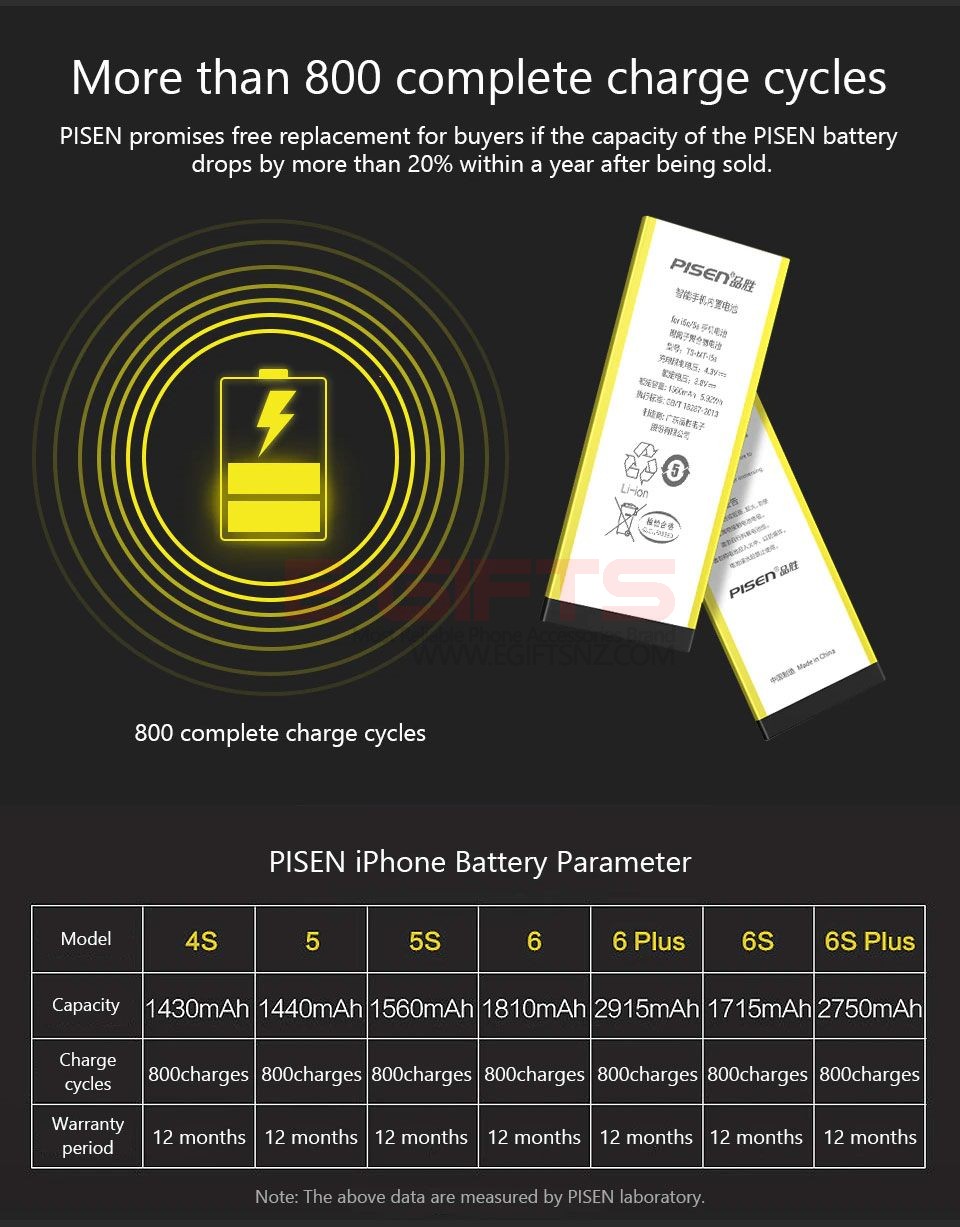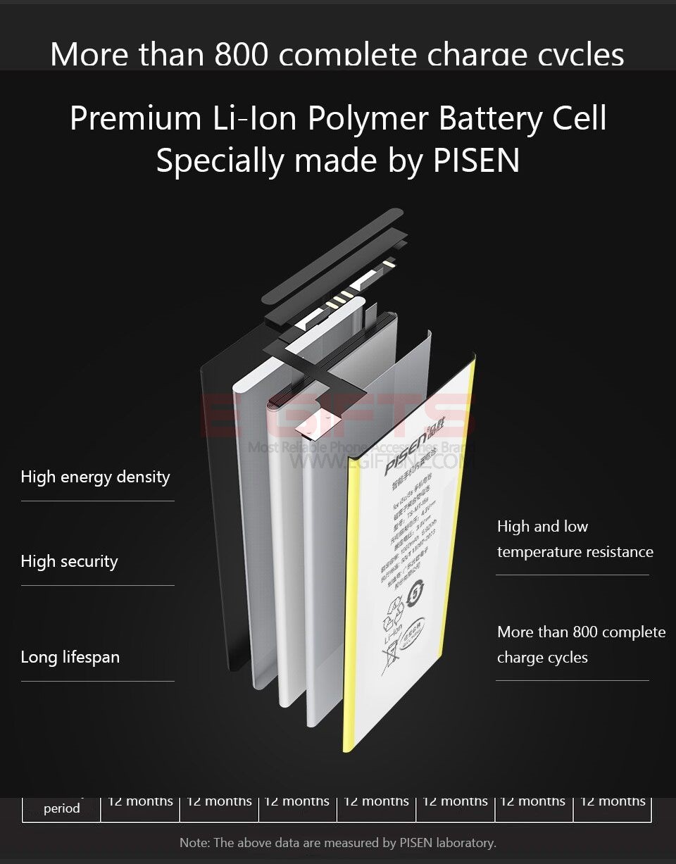 0 Cycle Brand-new Battery: 0 cycle means that this is a 100% brand new, not refurbished battery; By using high energy-density Li-ion battery cell, this Pisen battery is with high temperature resistance performance which provides stable current and voltage, and a longer battery life and over 800 cycling times (Most Li-Ion batteries can only cycle 300-500 times)