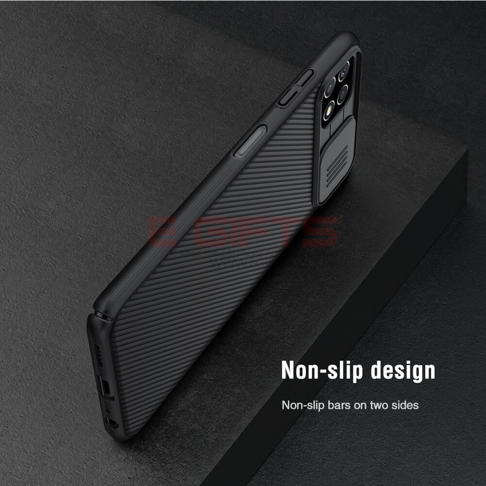 Nillkin CamShield cover case for Samsung Galaxy A22 5G, Galaxy F42 5GNillkin CamShield is a perfect combination of classic design in a fashionable, yet highly protective phone case. It has a slidable covering for camera protection, which also helps protect your privacy. The case is made from environmentally friendly PC plastic, a tough and wear-resistant material. Nillkin Camshield was made using the latest technology. The case feels great in the palm of your hand and is resistant to oil and fingerprints. It fits your device perfectly with its classic design and texture.
