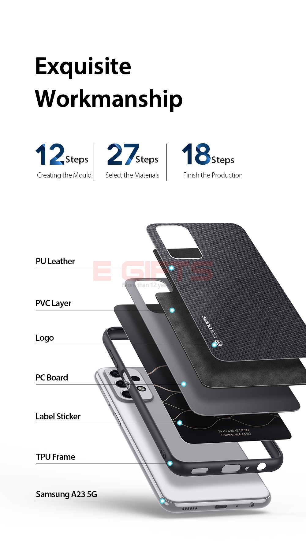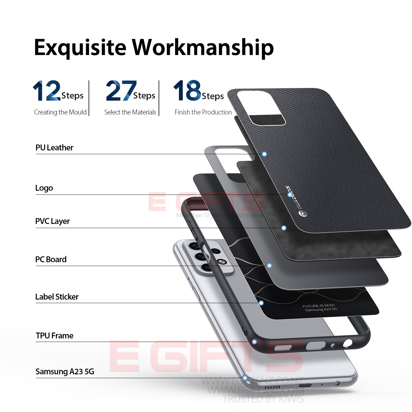 Made of quality PC with soft TPU edge, built-in PVC layer and woven fabric, which offers comfort in every grip.