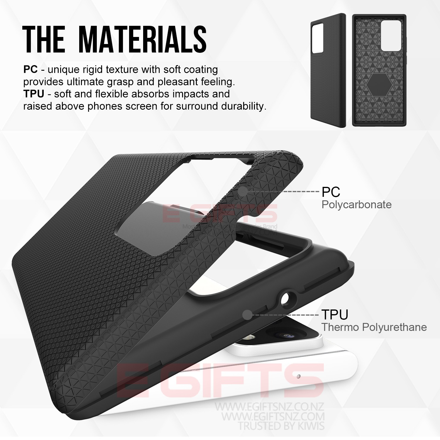 • The inside of the case is protected with TPU offering a rubberized feel.