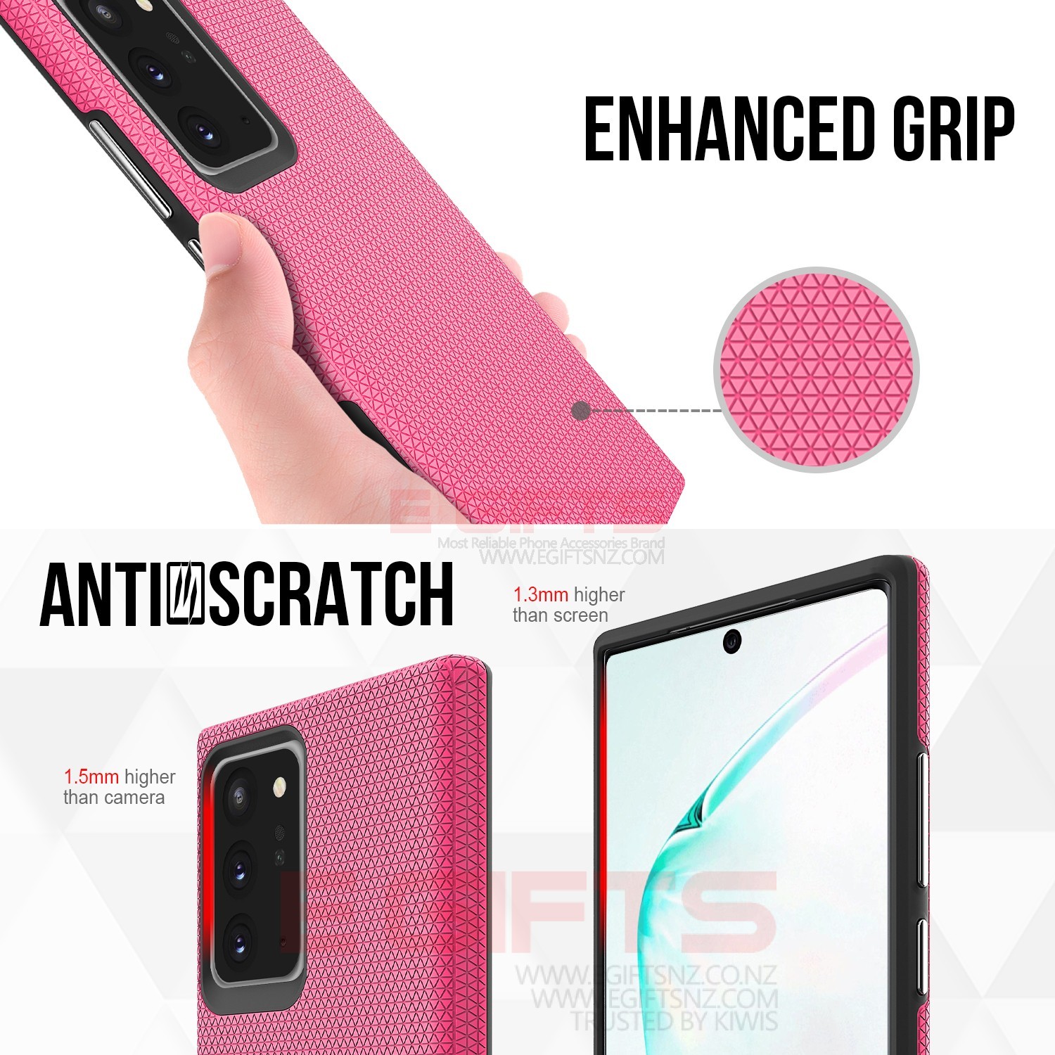 • Edges are designed higher than phone screen which will protect your phone screen when you put on rough surface.