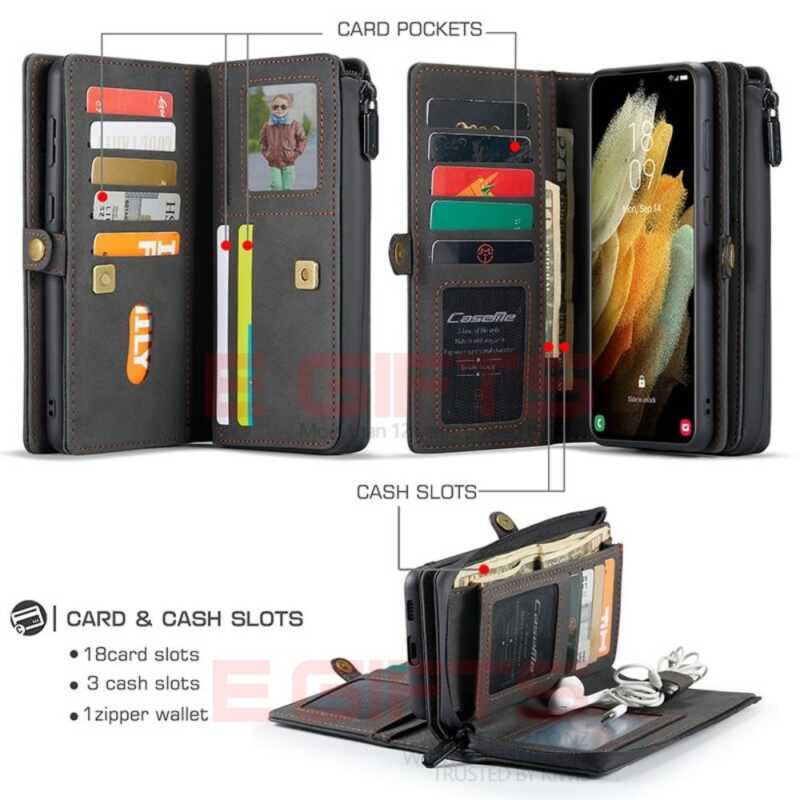 - Detachable 2-in-1 PU leather wallet case with 17 card slots.