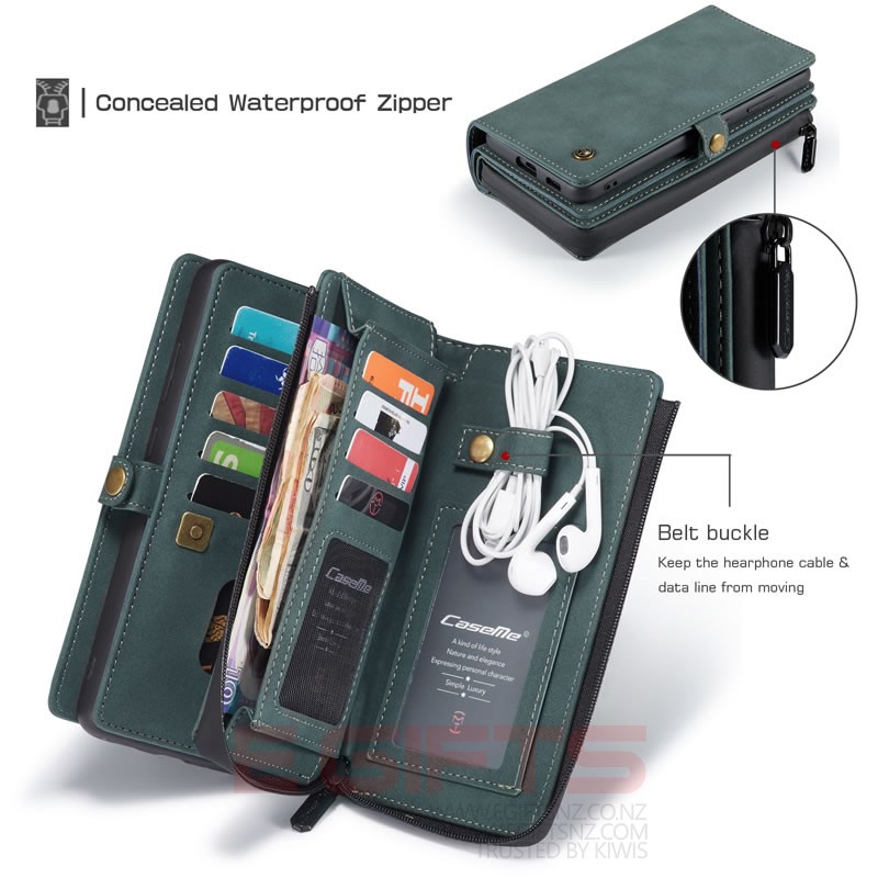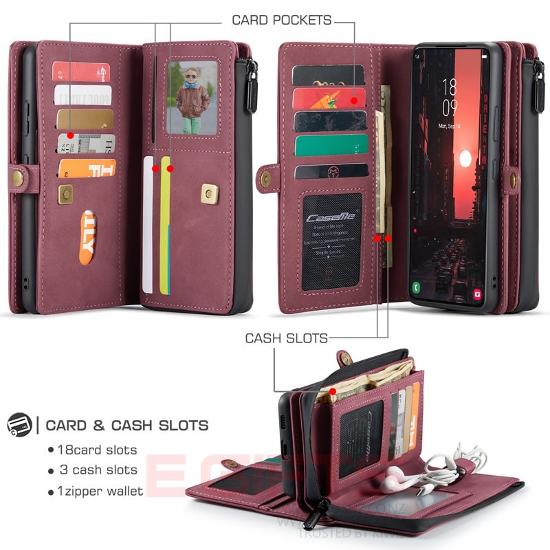 CaseMe Samsung Galaxy S22 wallet case is made from premium leather & durable TPU inner bumper, provides comfortable touch feeling. 15 card slots, 3 cash bags, 1 photo frame, 1 zip pocket, 1 earphone cable& data line belt buckle, 1 mobile phone shells, make your life and work more convenient. Covers all sides and corners of your phone, protects your phone from dust, scratches, bumps and includes raised sides to prevent screen scratches and any other daily wear, ,Reinforced stitching makes it more durable and protective. Ultra-strong magnetic closure provides your phone security.