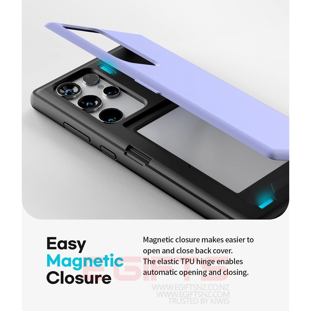 - [Magnetic Door] Magnetic closure makes easier to open and close back cover. If you use your card to hold back cover as a stand, you can enjoy video watching and games.
