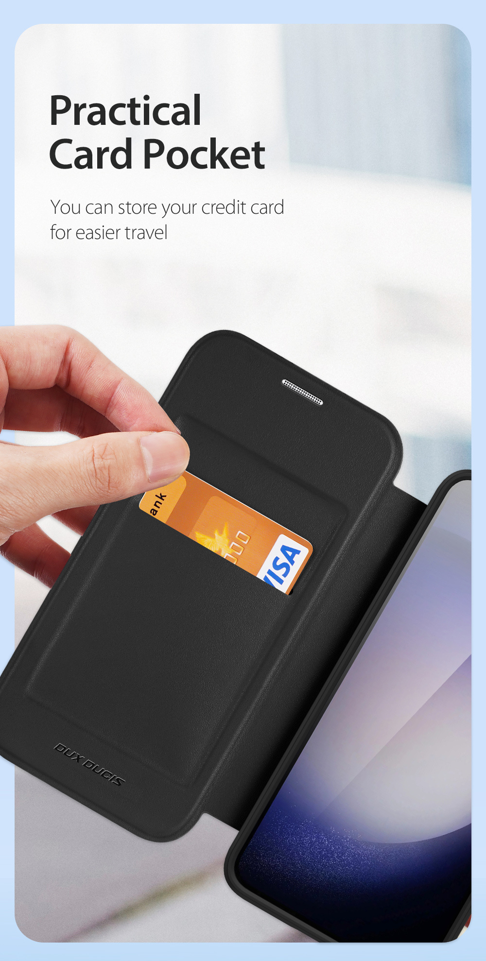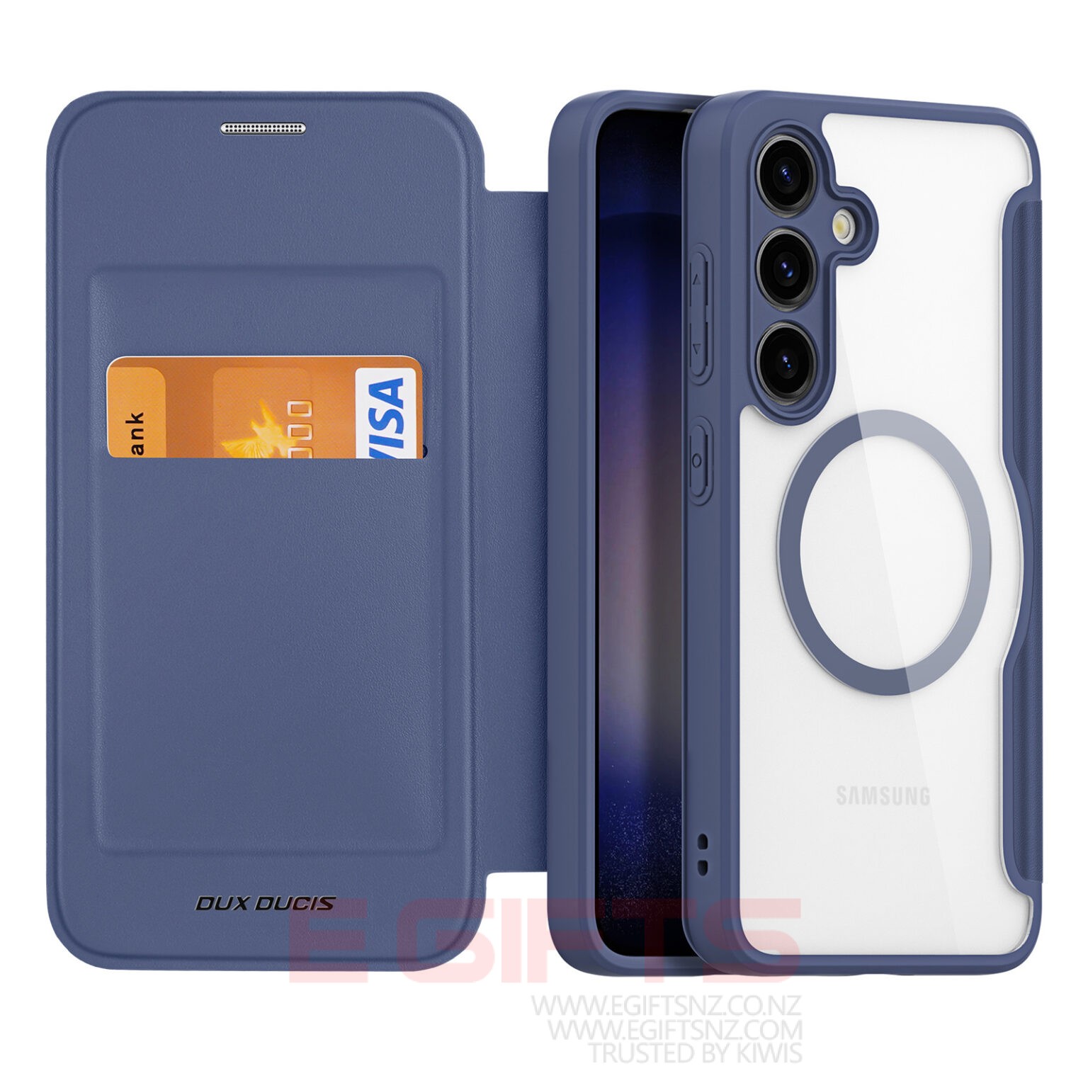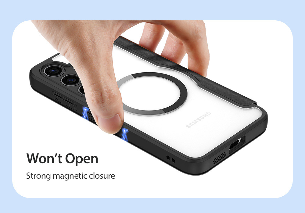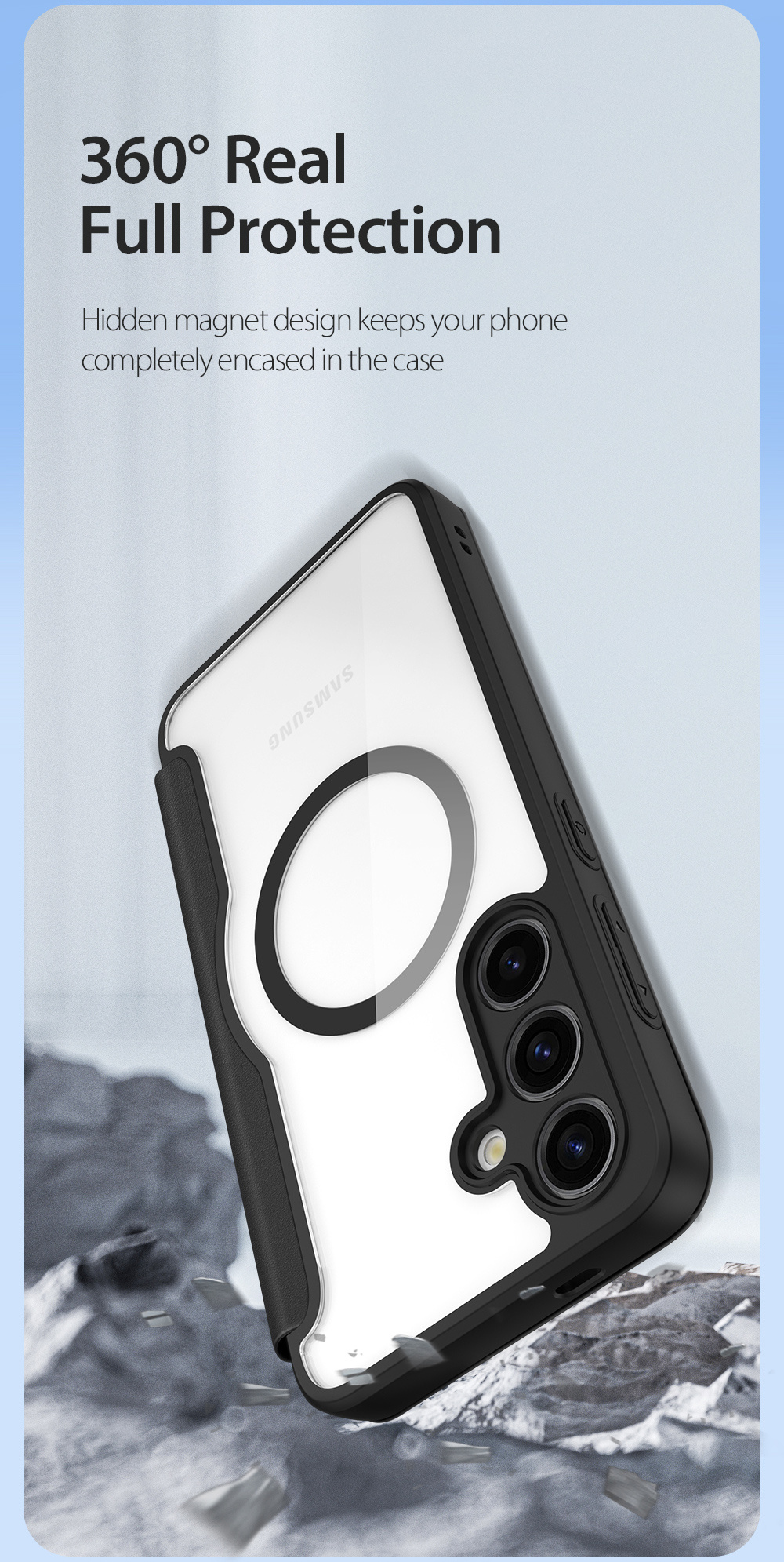 The world’s first folio case with MagSafe for Samsung S24 Plus, it works with Magsafe chargers, wallets, power banks. When it’s time to charge your Phone, just leave the case on your Phone and attach to your MagSafe charger.