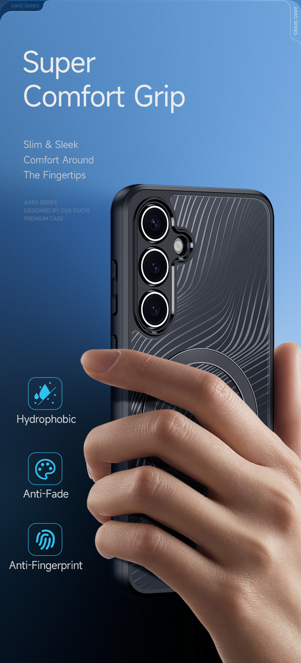 Very comfortable to hold the phone with this case in the hand, and the back of this case feels very silky.
