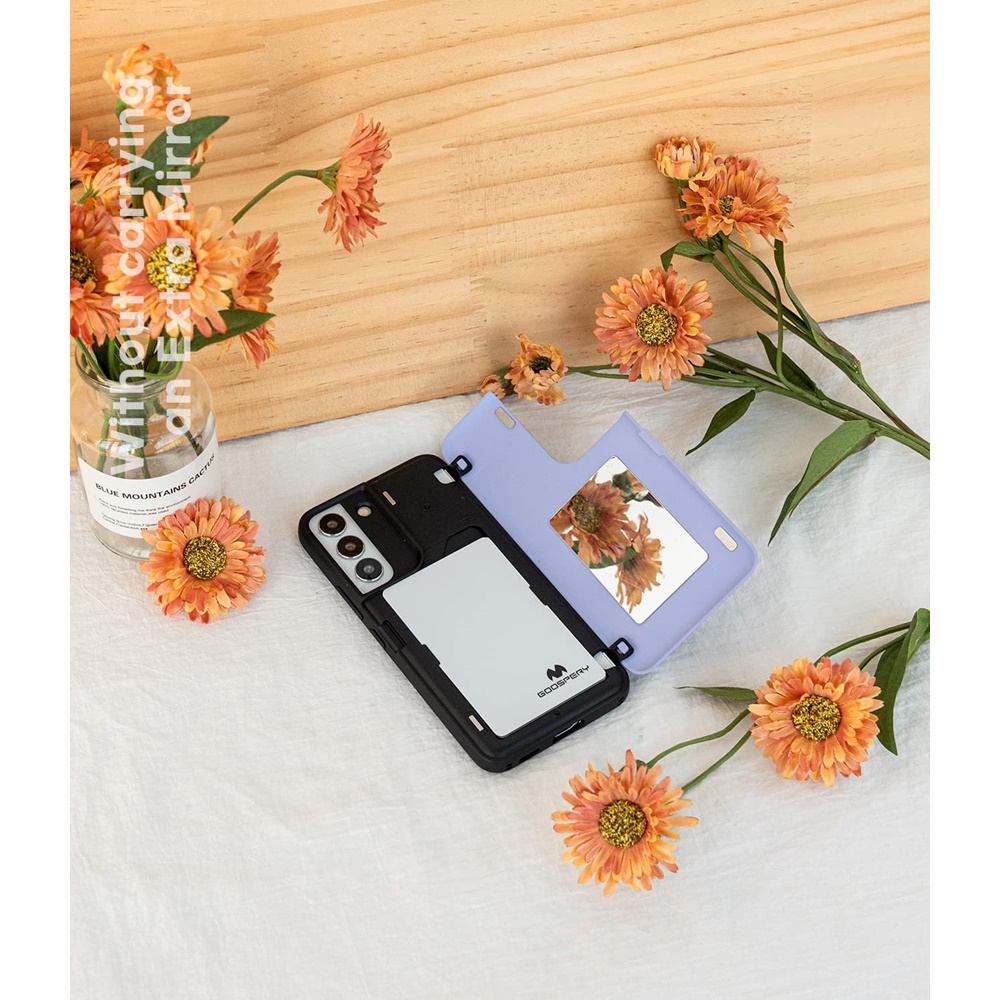 - [Card Holder] Dedicate to all card carrying folk. The card storage part is designed with a curve, so you can store 2 cards from bottom to top more easily. In addition, attachable hidden mirror inside is designed specially for quick etiquette checks. (Please remove the scratch resistant film before use.) Getting ready to go out is easier than ever.