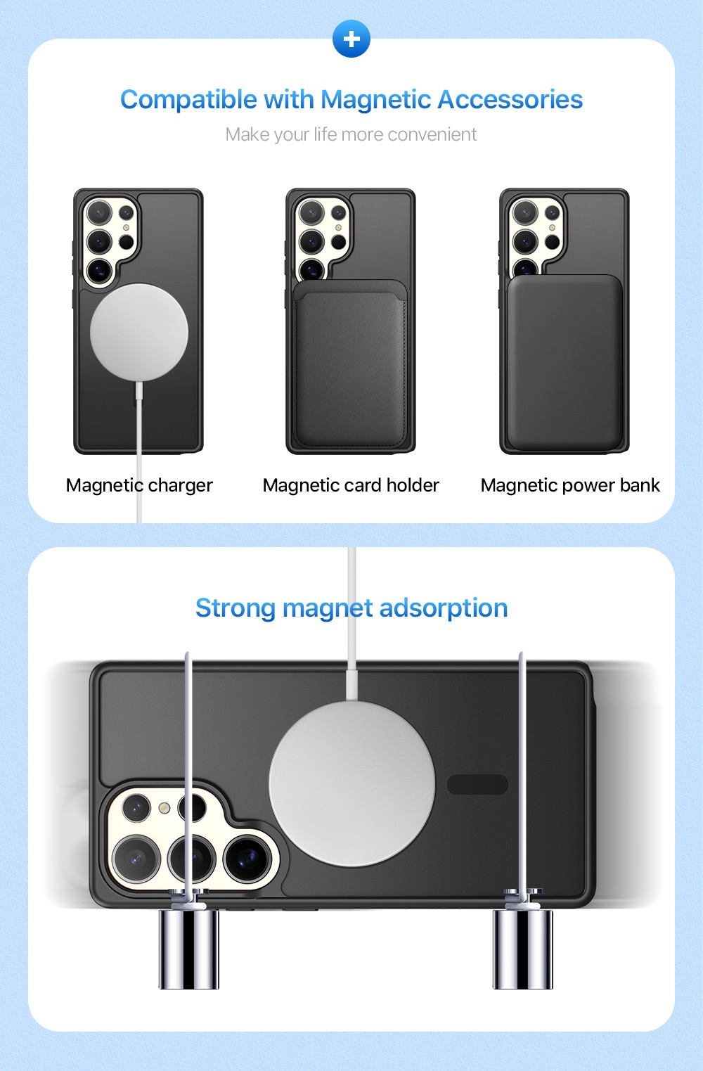 It supports magnetic charging and is compatible with magnetic accessories.