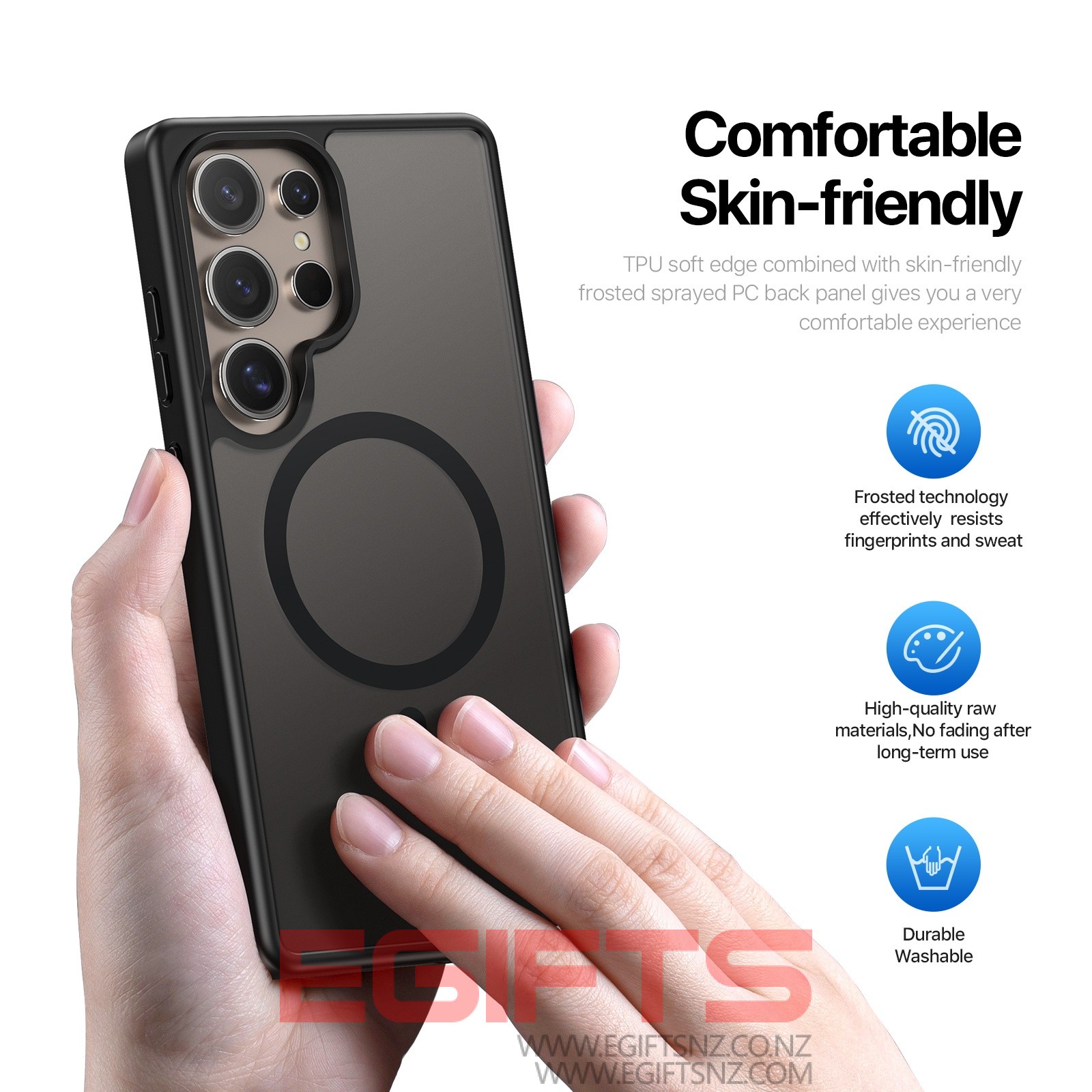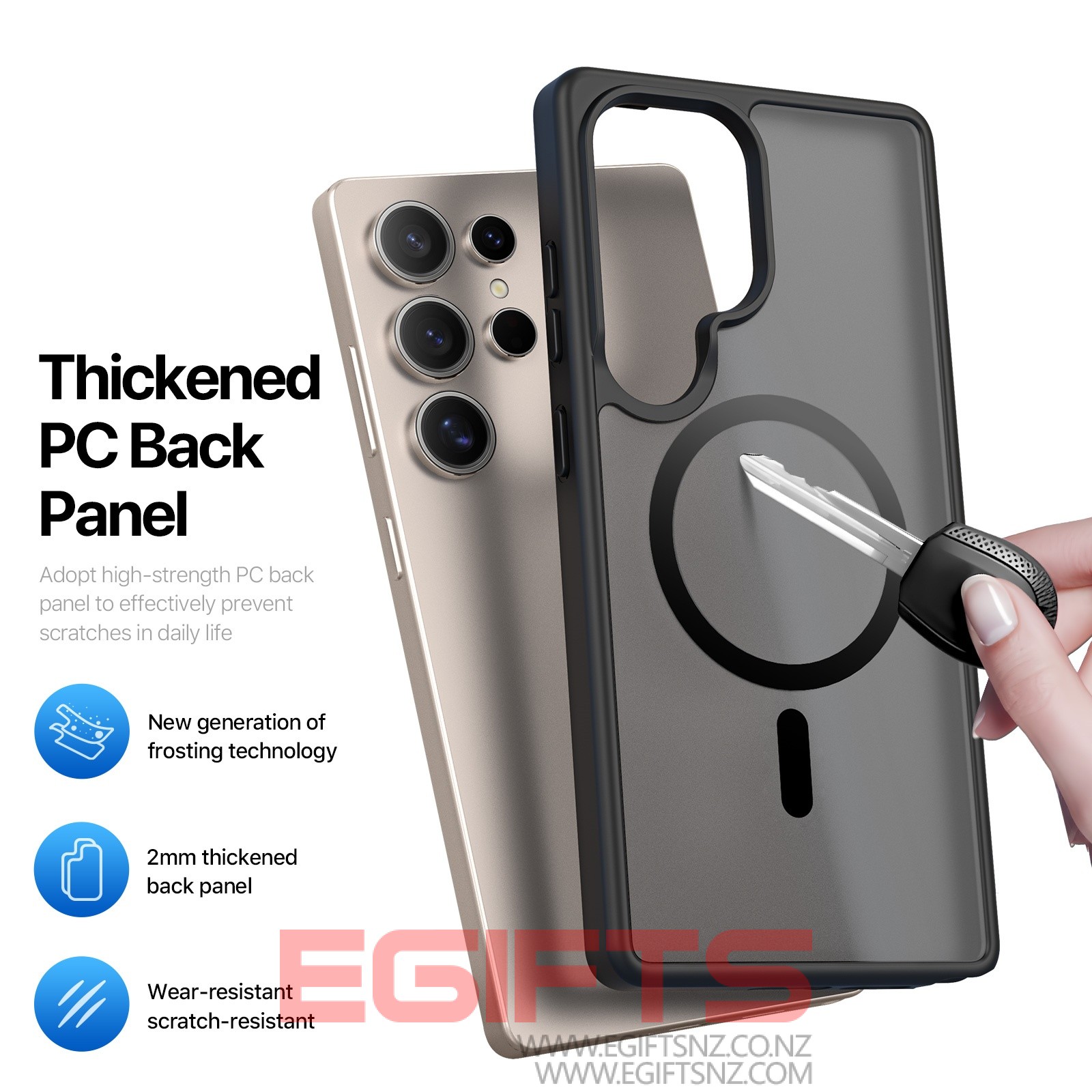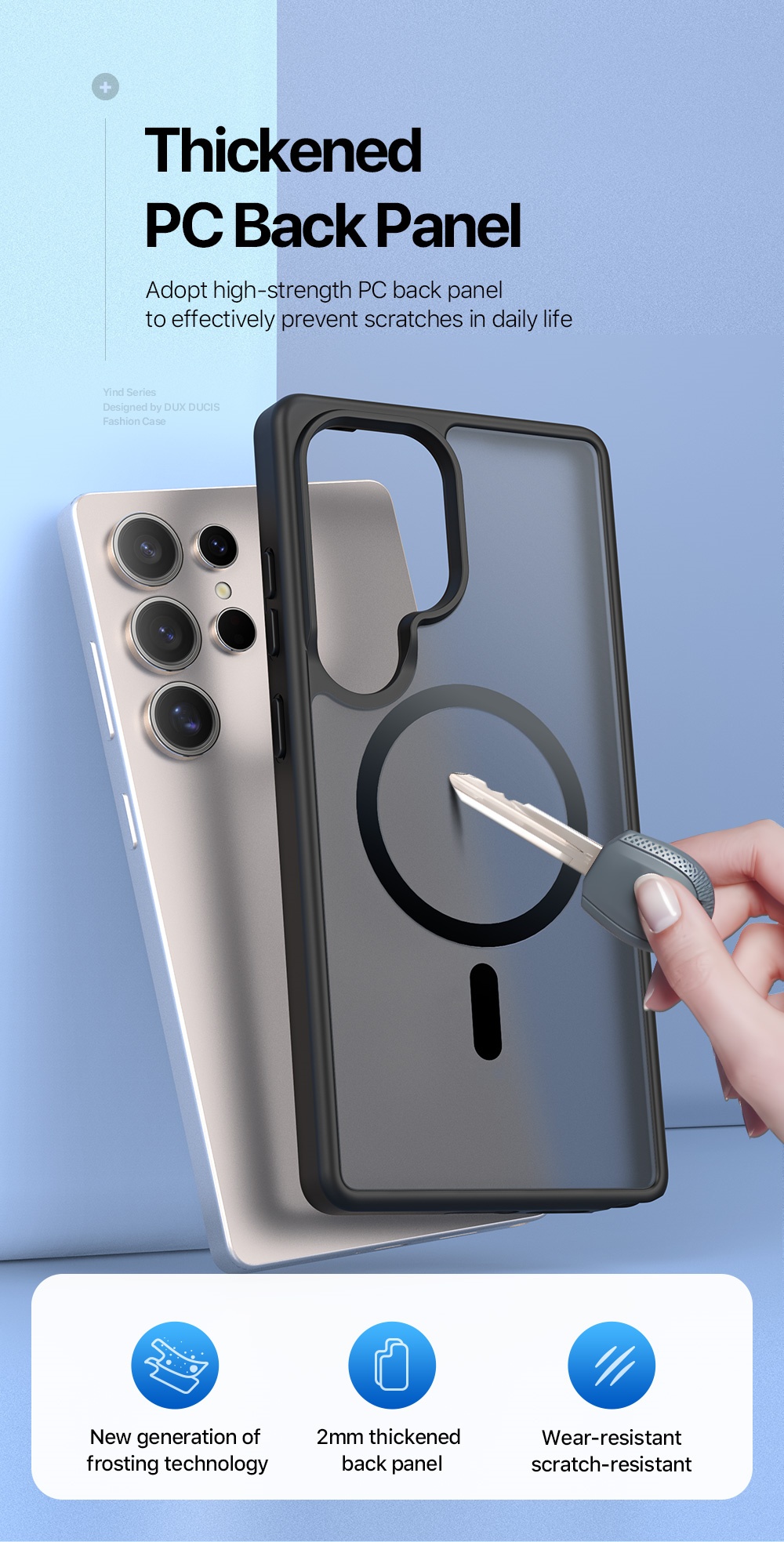 The thickened frosted back panel is not only wear-resistant, but also comfortable to the touch and anti-fingerprint;