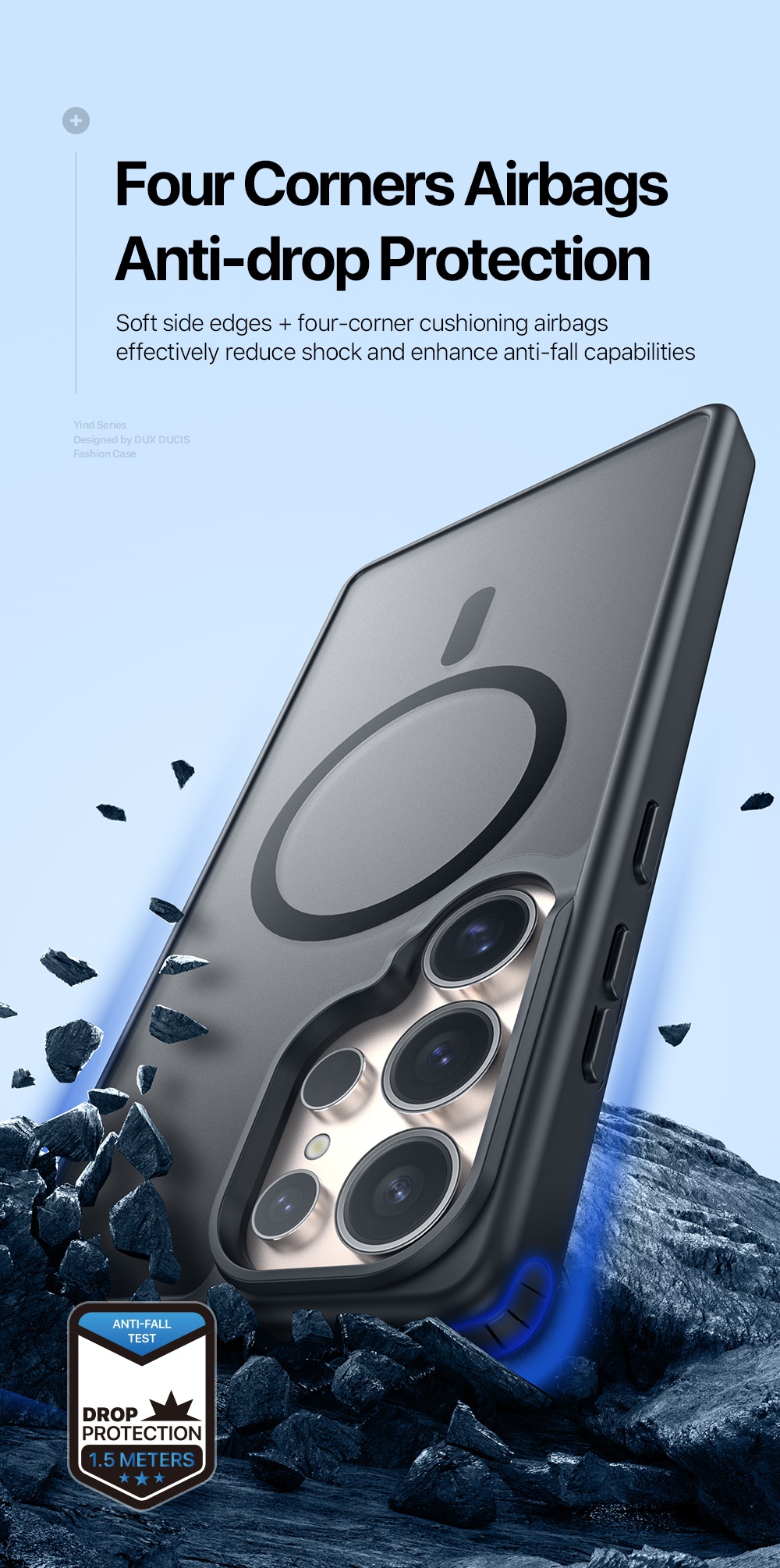 There are four small airbags at the four corners, which offers reliable drop protection;