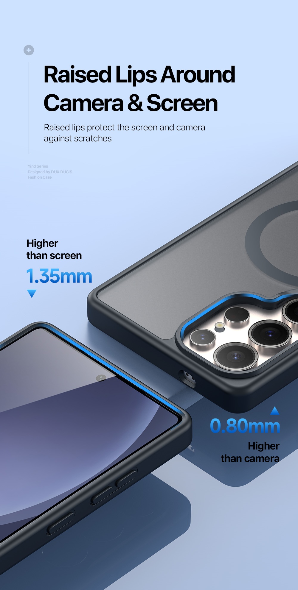 The edges are slightly higher to protect the screen and lens from scratches;