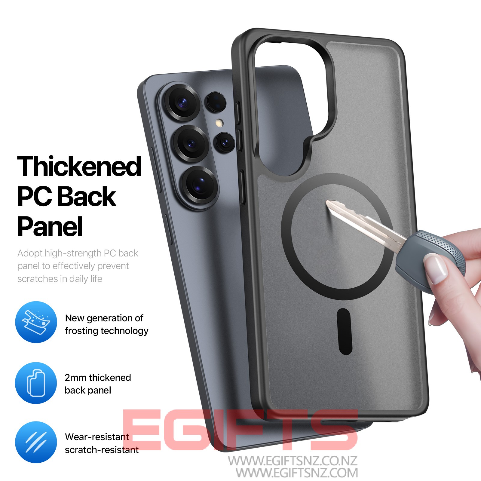 The thickened frosted back panel is not only wear-resistant, but also comfortable to the touch and anti-fingerprint;