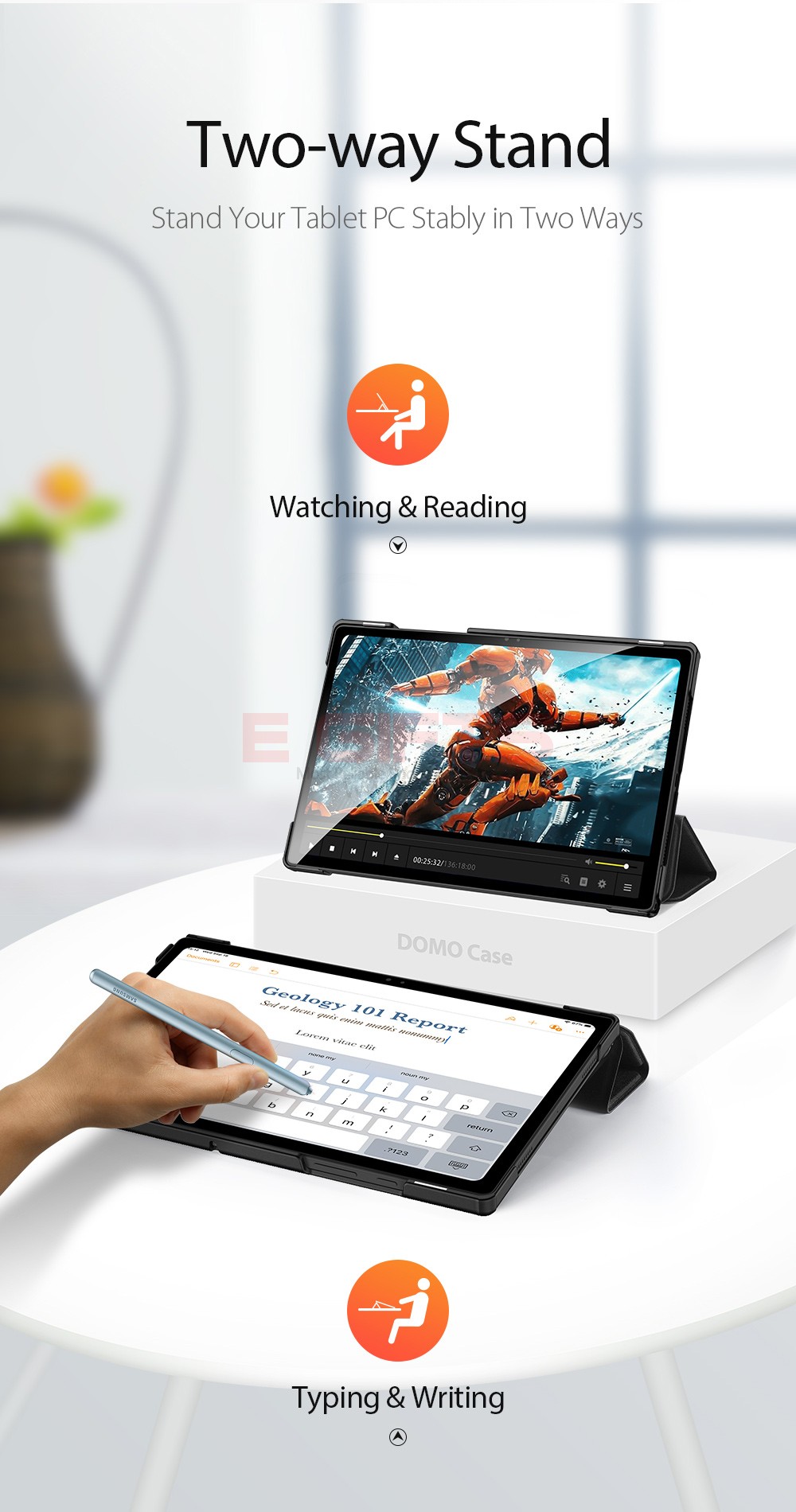 Can be converted into a stand easily for watching videos.