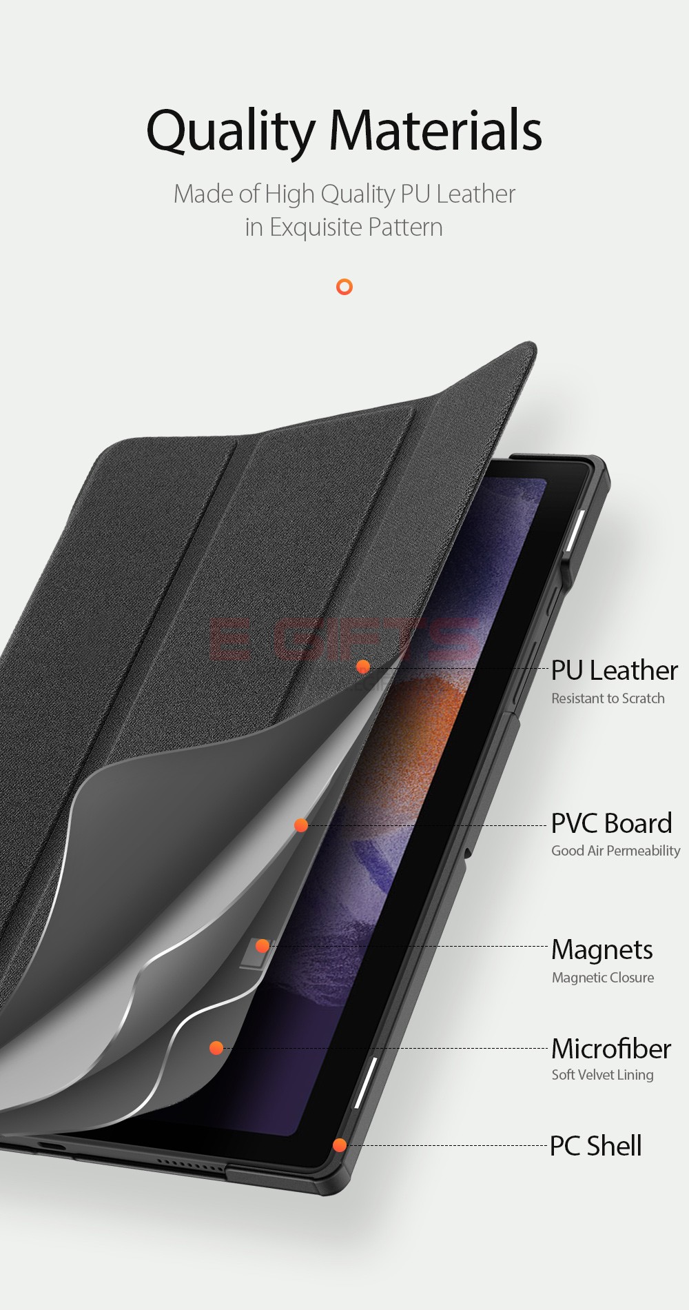 Made of high quality synthetic PU leather with PC back cover.