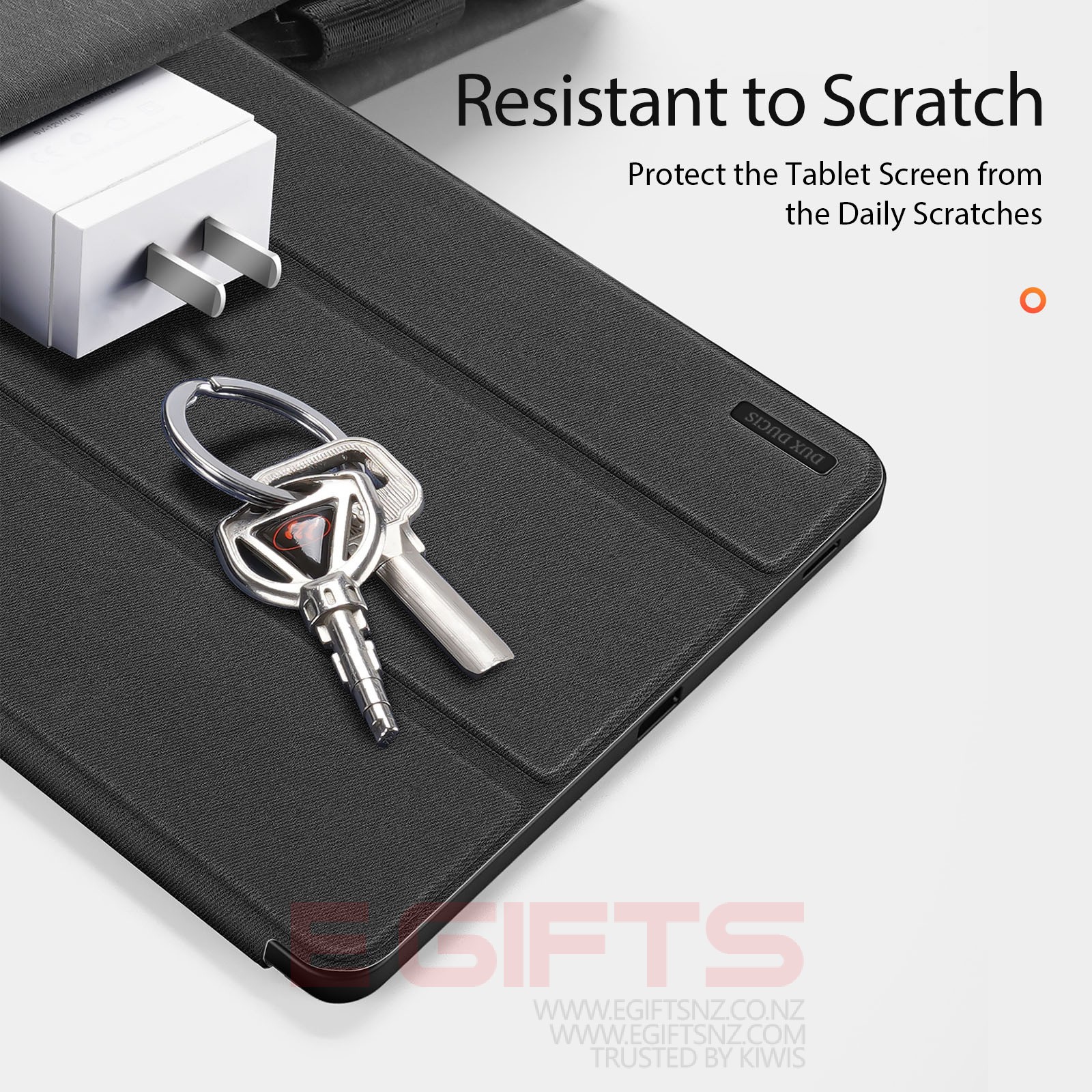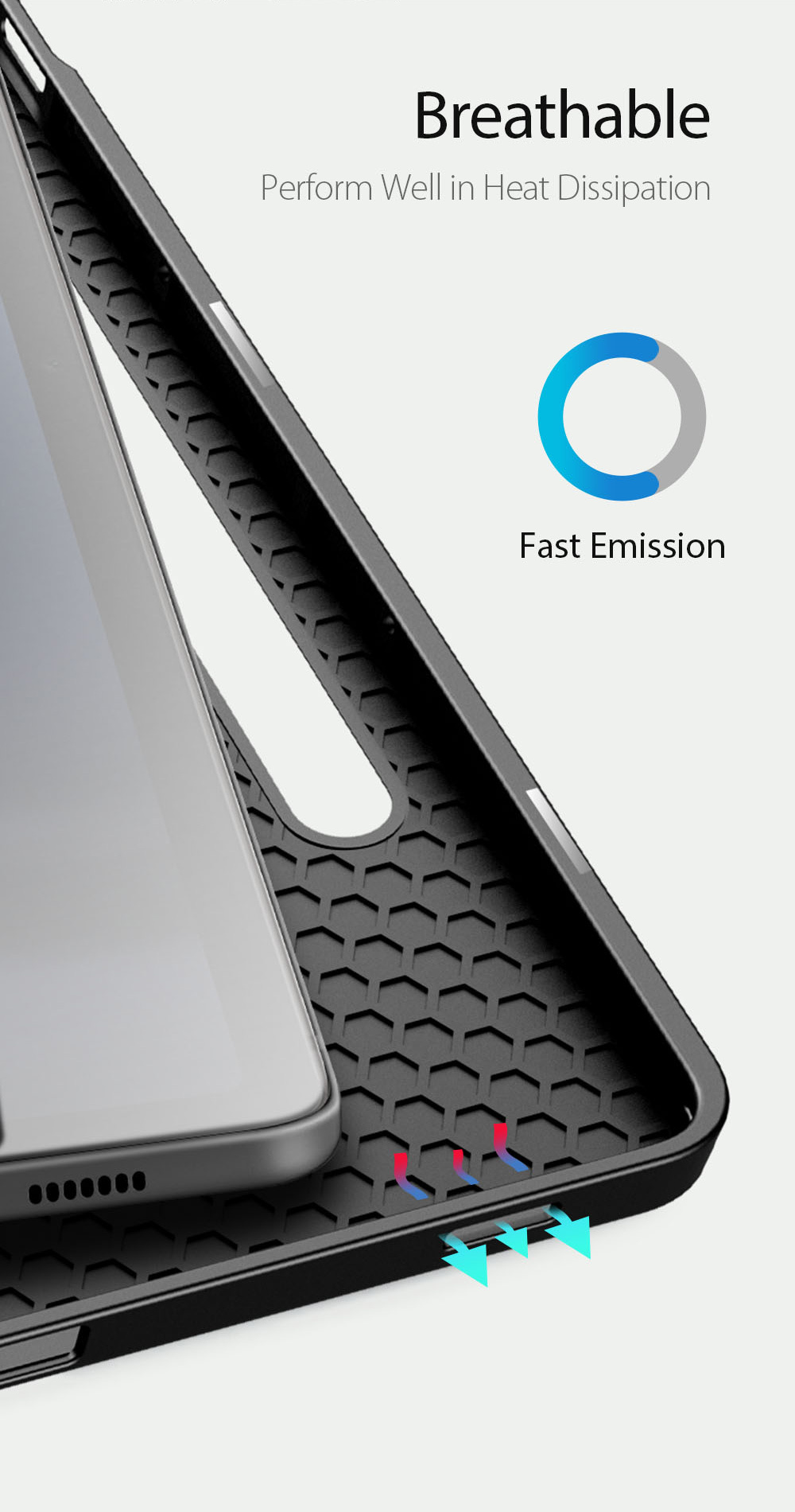 Comes with wake/sleep function, open the case, the tablet wakes up; close the case, it sleeps.