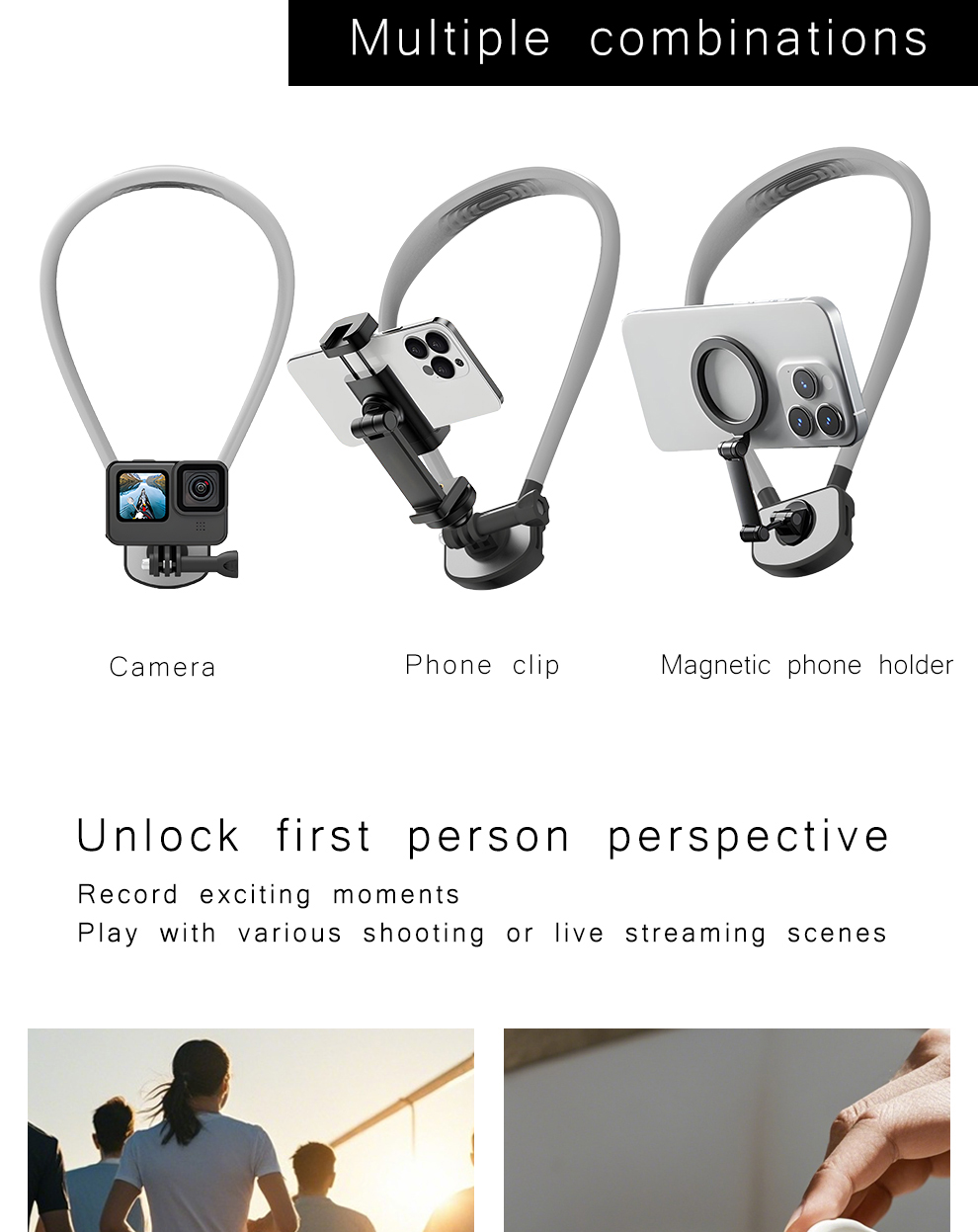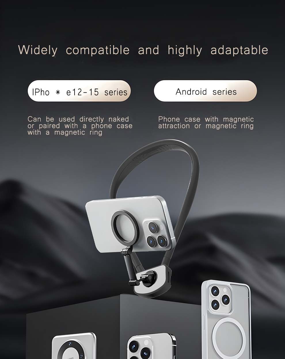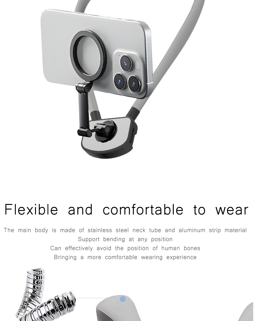- 【Hands Free Phone Shooting】The magnetic body neck mount for phones like a necklace comes with a flexible phone holder compatible with MagSafe case iPhone 16 15 Pro Max Plus 14 13 for content creator vlogging, filming, video recording, and other creations. For phones with insufficient magnetic properties, 2 magnetic rings are included for being attached to a phone case to widen compatibility, making GP16 suitable for almost all smartphones