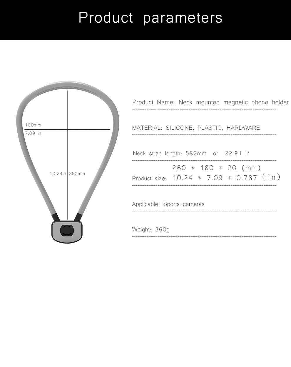 - Neck Mount Holder for POV Shots】 Designed for smartphones and action cameras, this magnetic quick release neck mount frees your hands to capture perfect immersive Point of View (POV) shots. The sturdy all metal hinges ensure a firm connection to your devices, and the soft and skin friendly silicone coverings ensure a comfortable fit for your neck or shoulder. The neck strap is 24″ (60cm) long when fully stretched. Note: Do not use this magnetic neck mount in high speed action scenarios