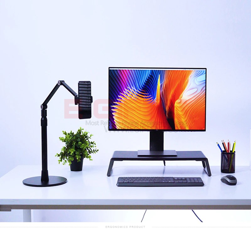 - 【Universal Fit】 This tablet&cellphone desktop stand includes two holders, which is applicable to 3.5-11″ cellphone or tablet, suitable for teaching, document display, live broadcast, video recording, daily use and other scenes.