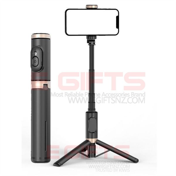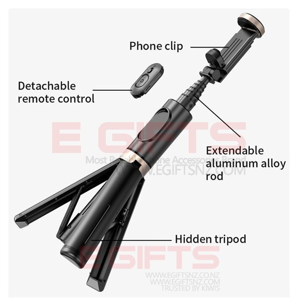 Mobile Phone Holder Tripod Extendable Aluminium Alloy Pole Live Streaming Selfie Stick with Bluetooth Remote Control – Black