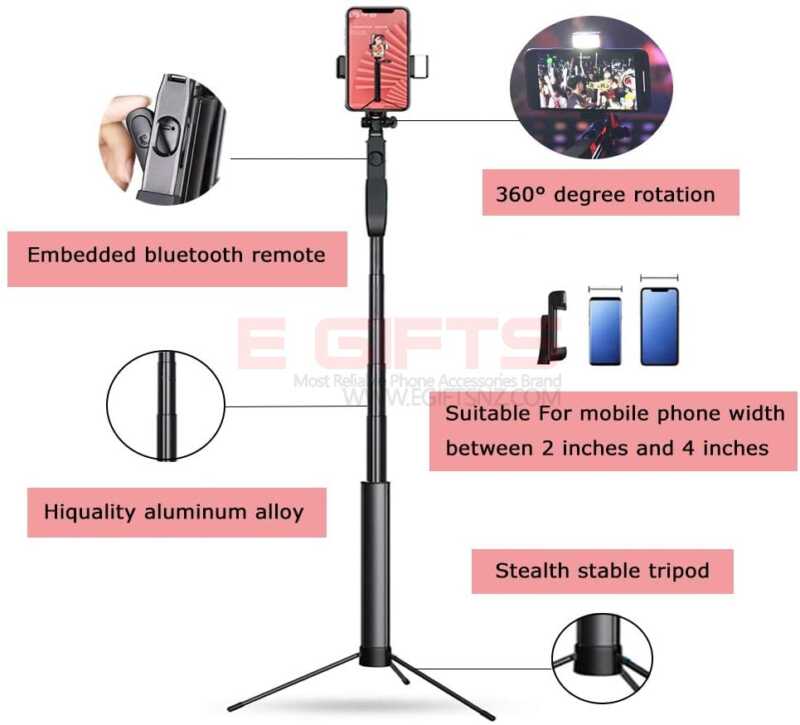 Multi-function All In One Selfie Stick: The fill flash on the side of the tripod’s phone holder makes you look better when you taking the picture. The selfie stick secondary handle has horizontal video capture, let the video effect more clear and stable. Perfect for selfies, adventure travel, YouTube videos etc.